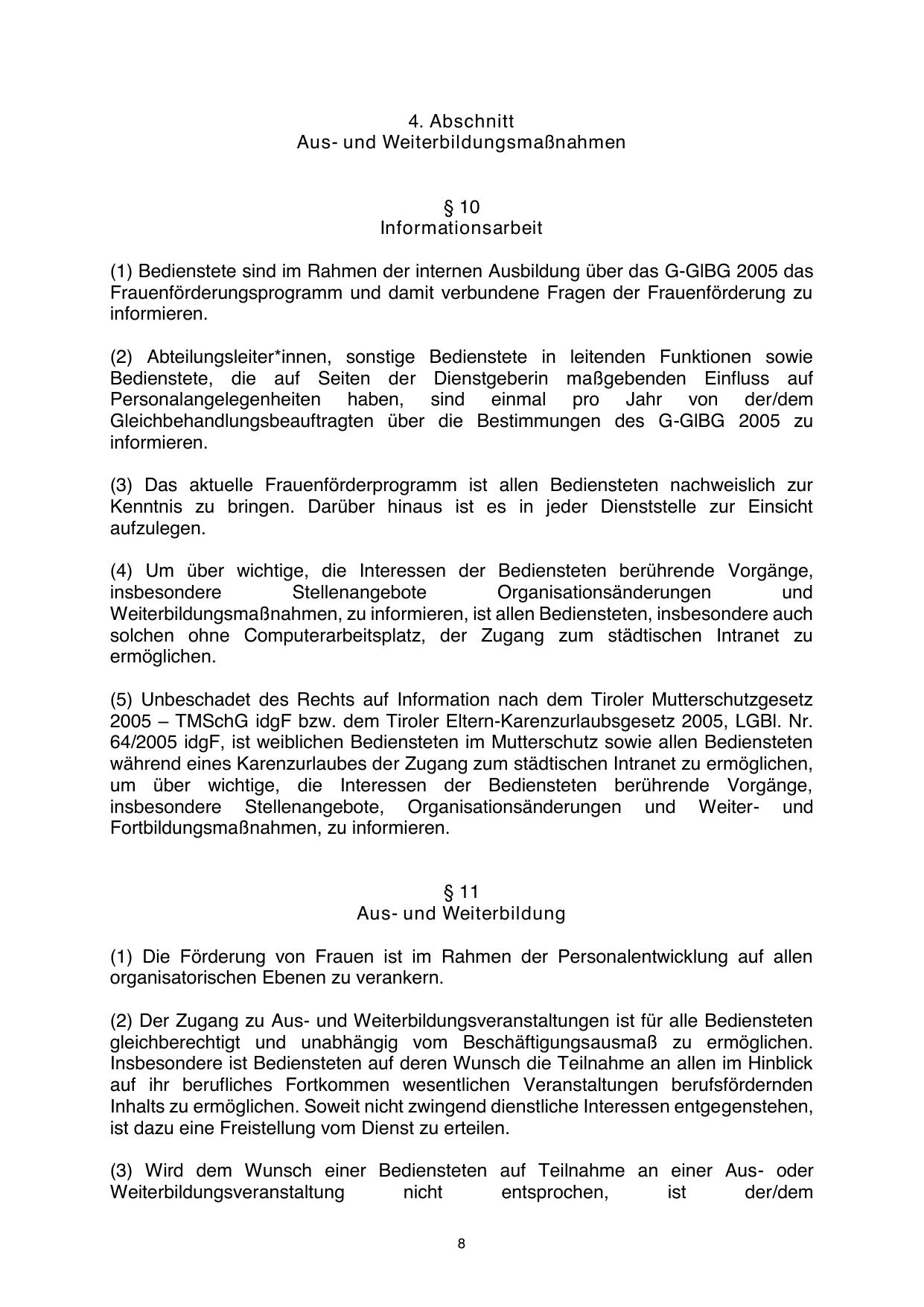 (1) Bedienstete sind im Rahmen der internen Ausbildung über das G-GlBG 2005 das