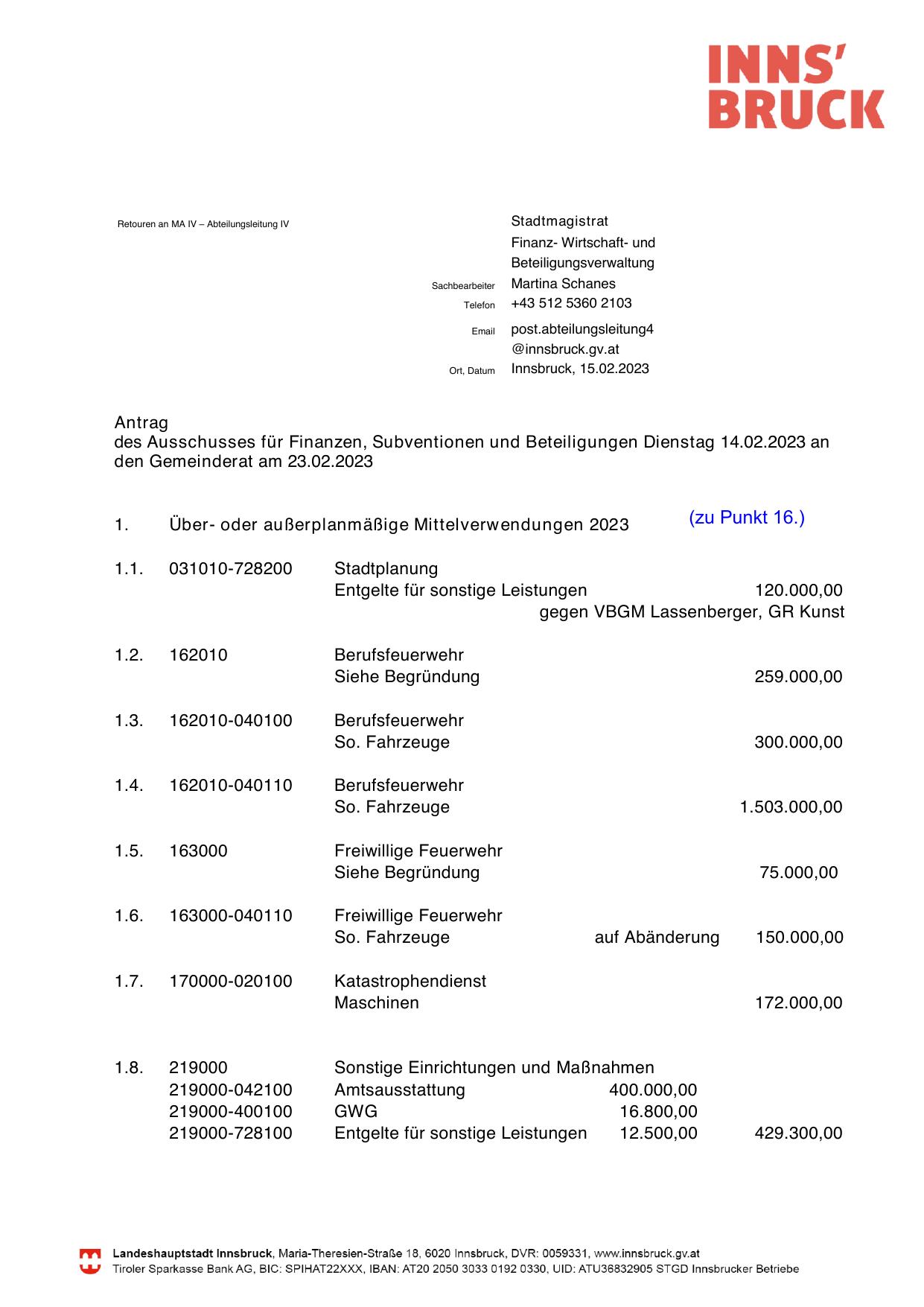 Über- oder außerplanmäßige Mittelverwendungen 2023
