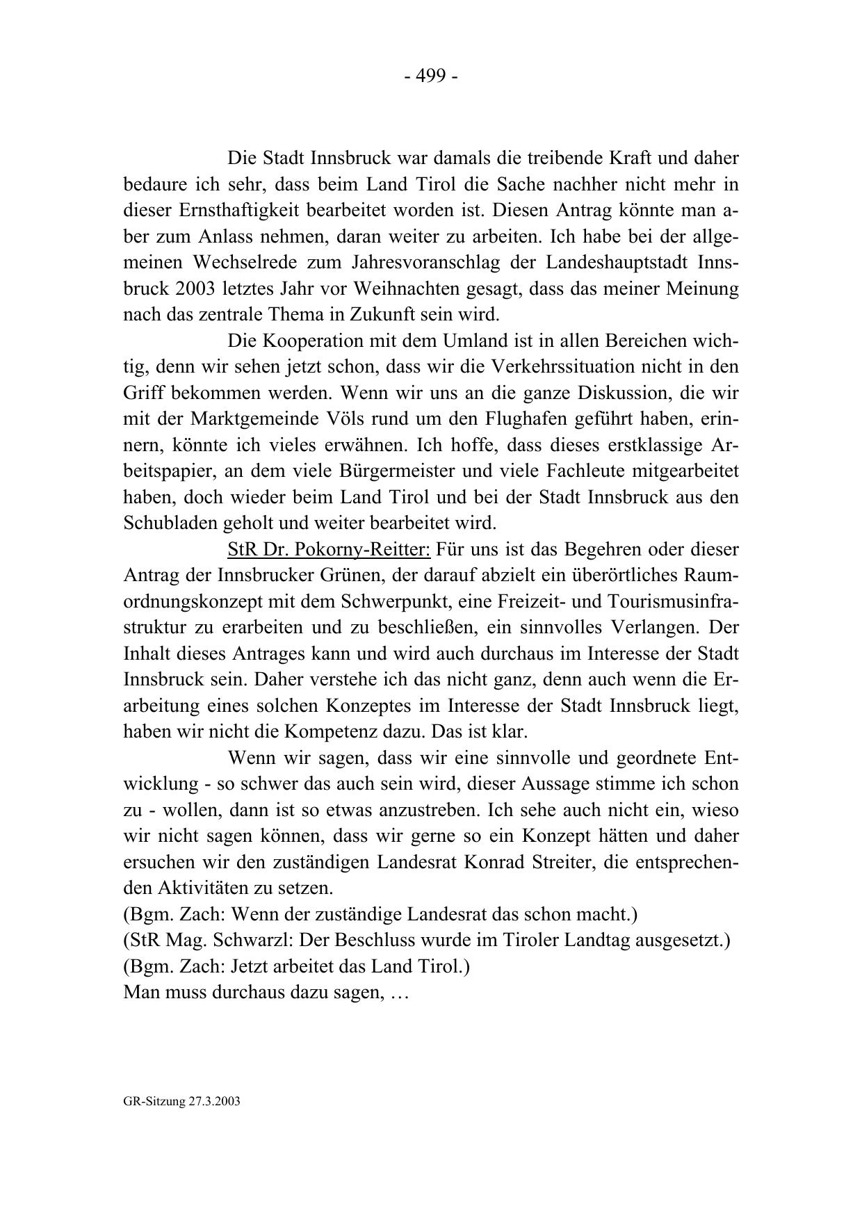 dieser Ernsthaftigkeit bearbeitet worden ist. Diesen Antrag könnte man aber zum Anlass nehmen, daran weiter zu arbeiten. Ich habe bei der allgemeinen Wechselrede zum Jahresvoranschlag der Landeshauptstadt Innsbruck 2003 letztes Jahr vor Weihnachten gesagt, dass das meiner Meinung
