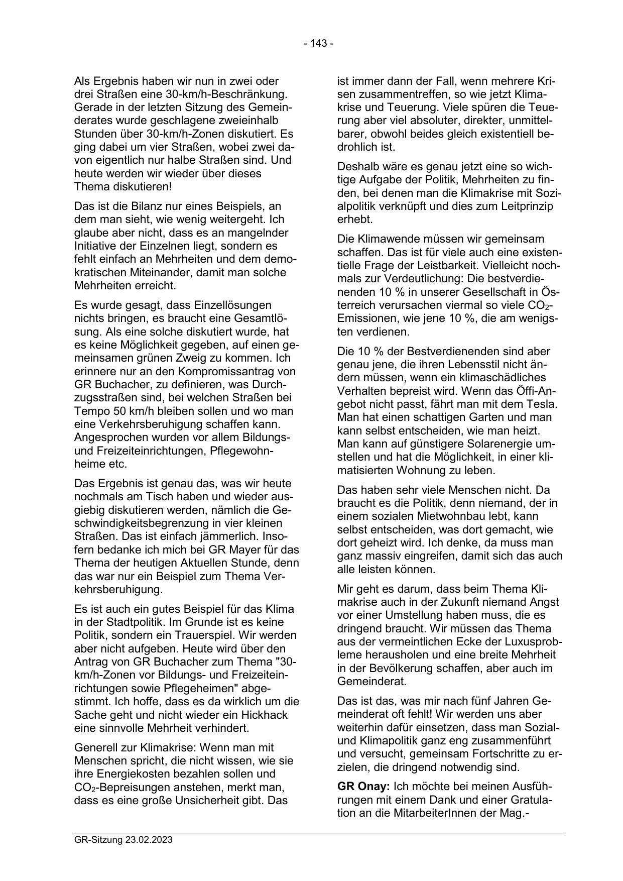 Stunden über 30-km/h-Zonen diskutiert. Es