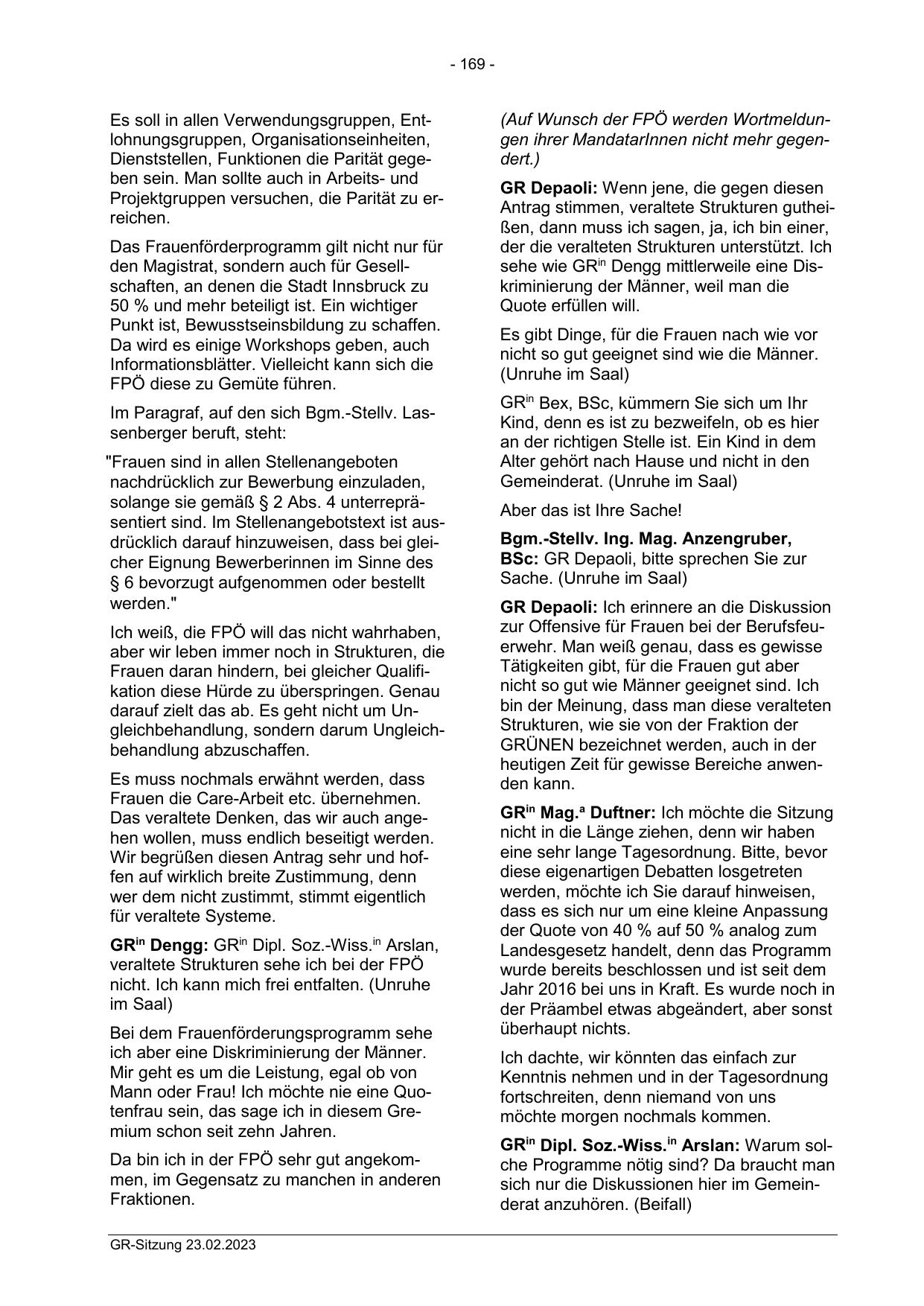(Auf Wunsch der FPÖ werden Wortmeldungen ihrer MandatarInnen nicht mehr gegendert.)