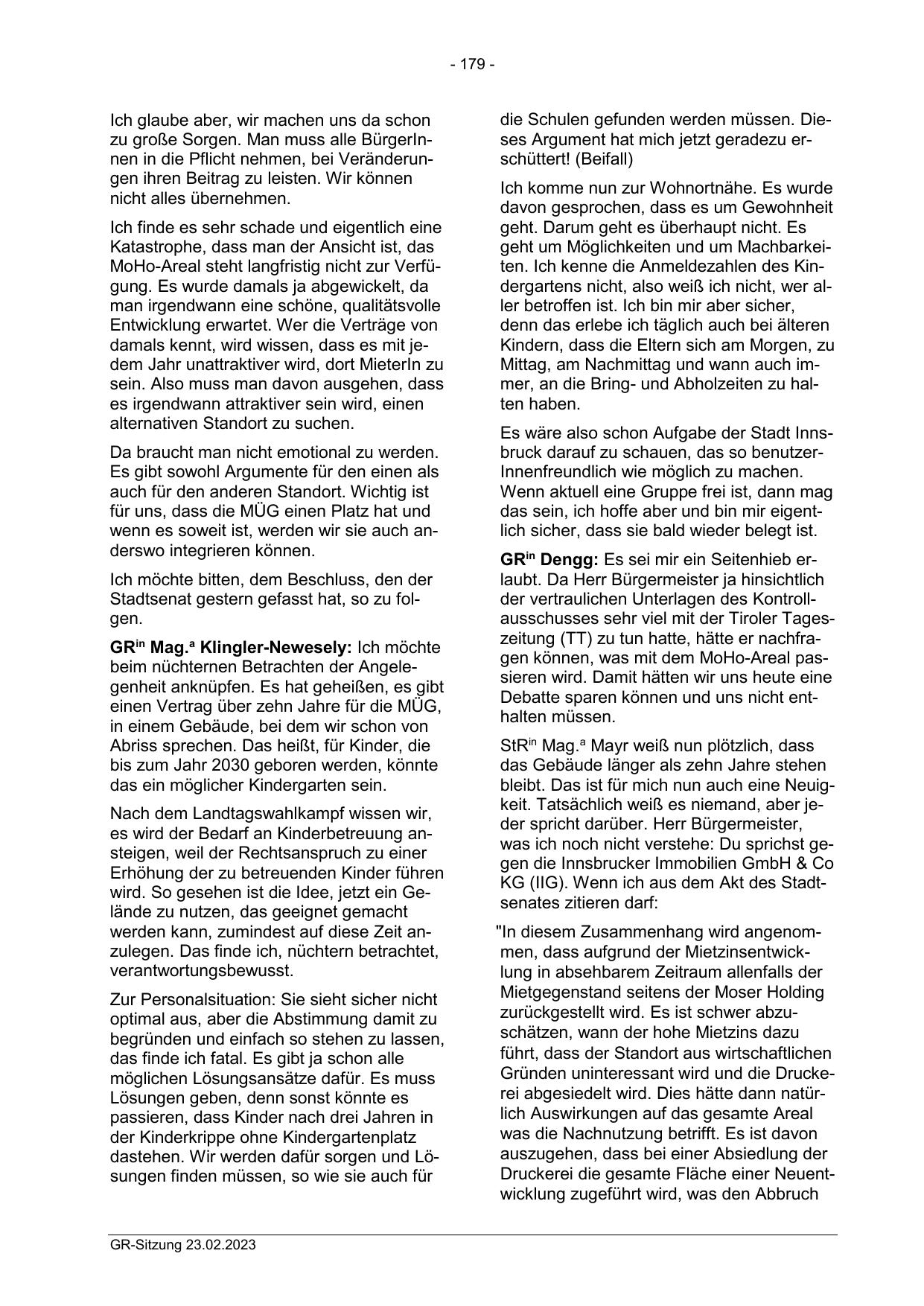 der vertraulichen Unterlagen des Kontrollausschusses sehr viel mit der Tiroler Tageszeitung (TT) zu tun hatte, hätte er nachfragen können, was mit dem MoHo-Areal passieren wird. Damit hätten wir uns heute eine