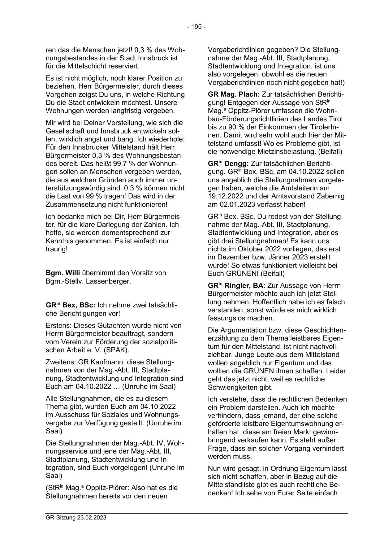 GRin Dengg: Zur tatsächlichen Berichtigung. GRin Bex, BSc, am 04.10.2022 sollen