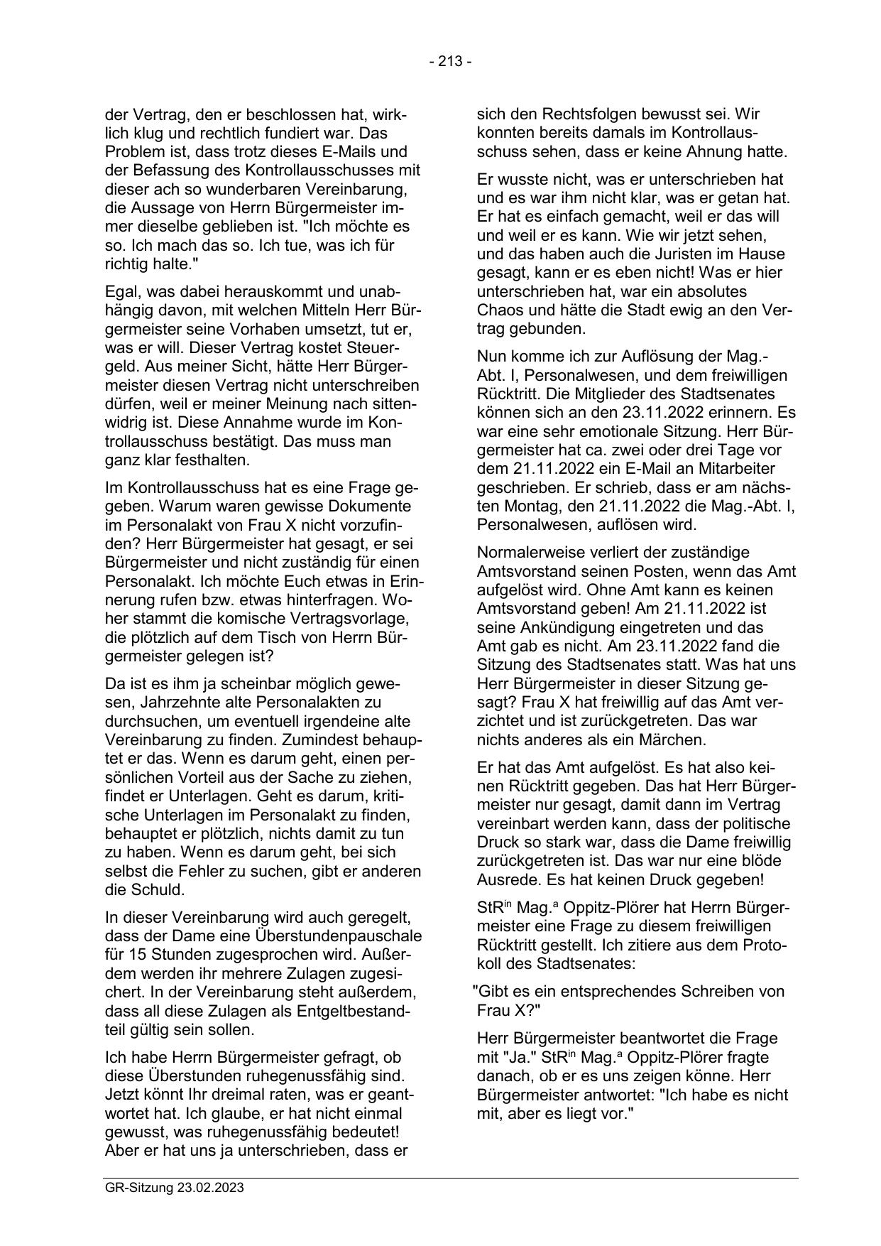 Herr Bürgermeister in dieser Sitzung gesagt? Frau X hat freiwillig auf das Amt verzichtet und ist zurückgetreten. Das war