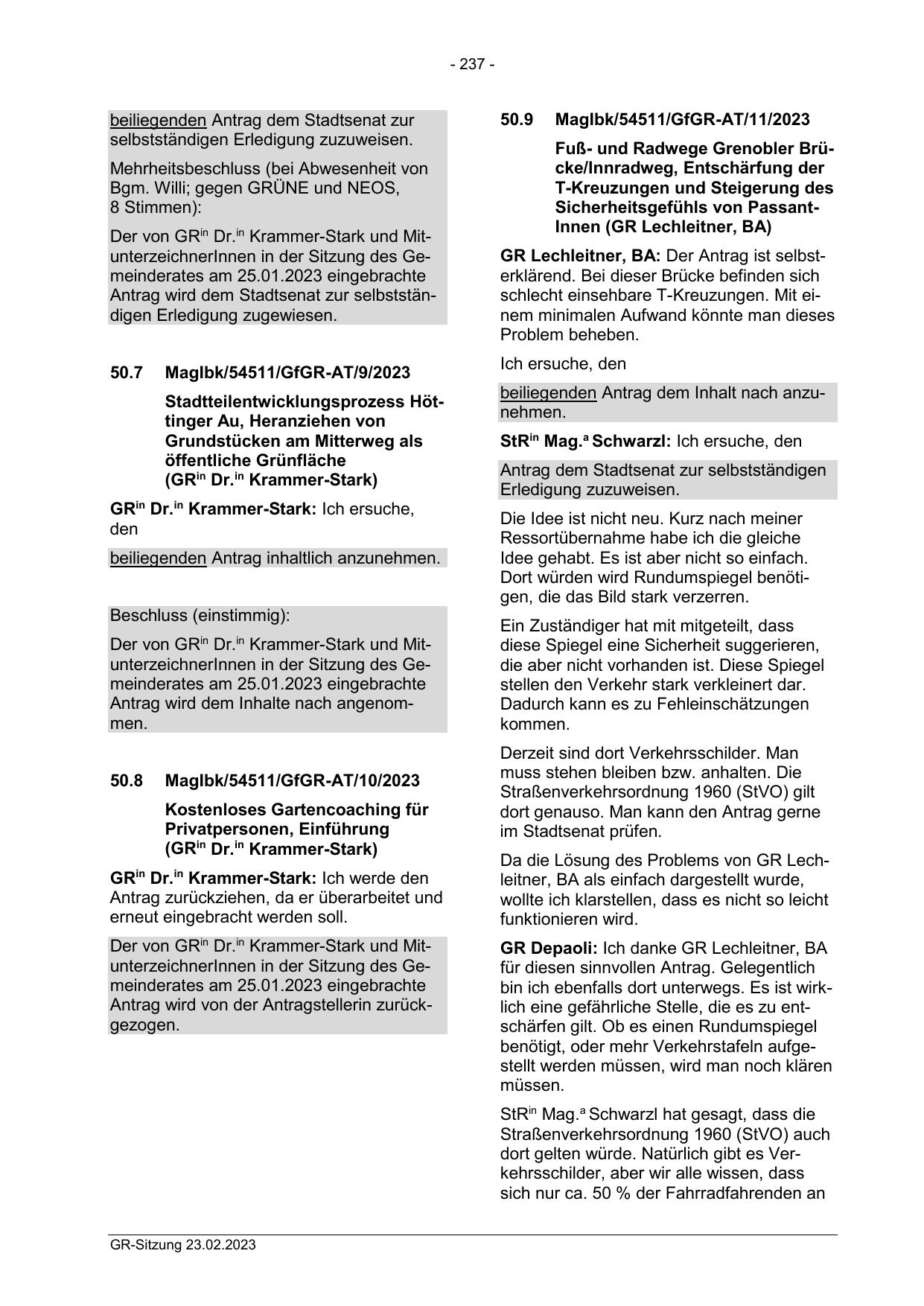 Der von GRin Dr.in Krammer-Stark und MitunterzeichnerInnen in der Sitzung des Gemeinderates am 25.01.2023 eingebrachte