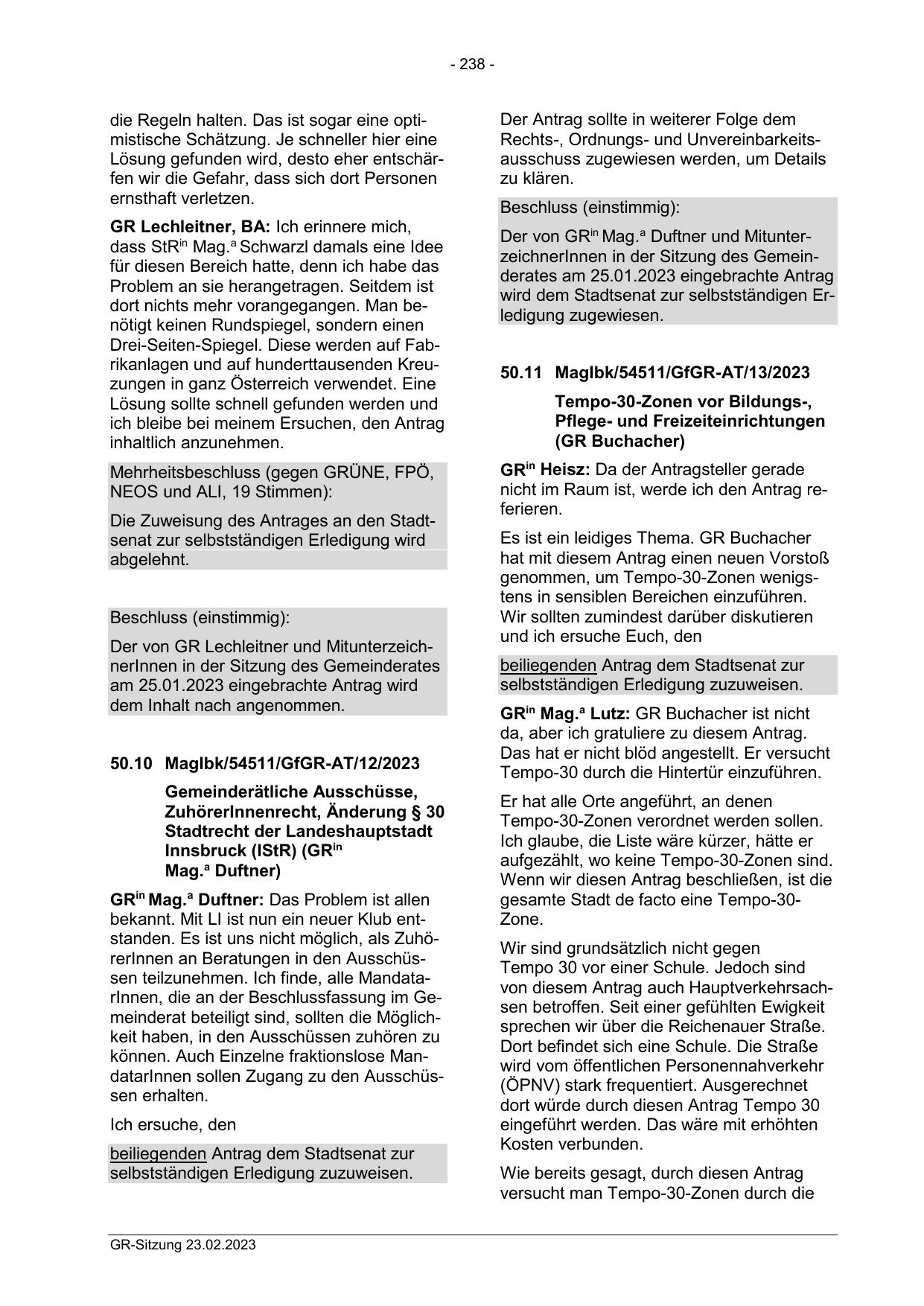 bekannt. Mit LI ist nun ein neuer Klub entstanden. Es ist uns nicht möglich, als ZuhörerInnen an Beratungen in den Ausschüssen teilzunehmen. Ich finde, alle MandatarInnen, die an der Beschlussfassung im Gemeinderat beteiligt sind, sollten die Möglichkeit haben, in den Ausschüssen zuhören zu