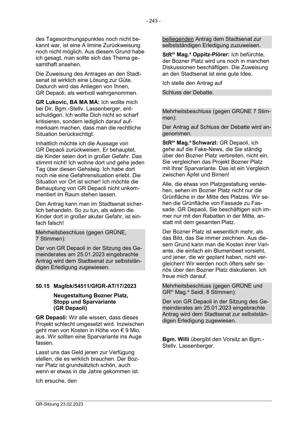 Der von GR Depaoli in der Sitzung des Gemeinderates am 25.01.2023 eingebrachte