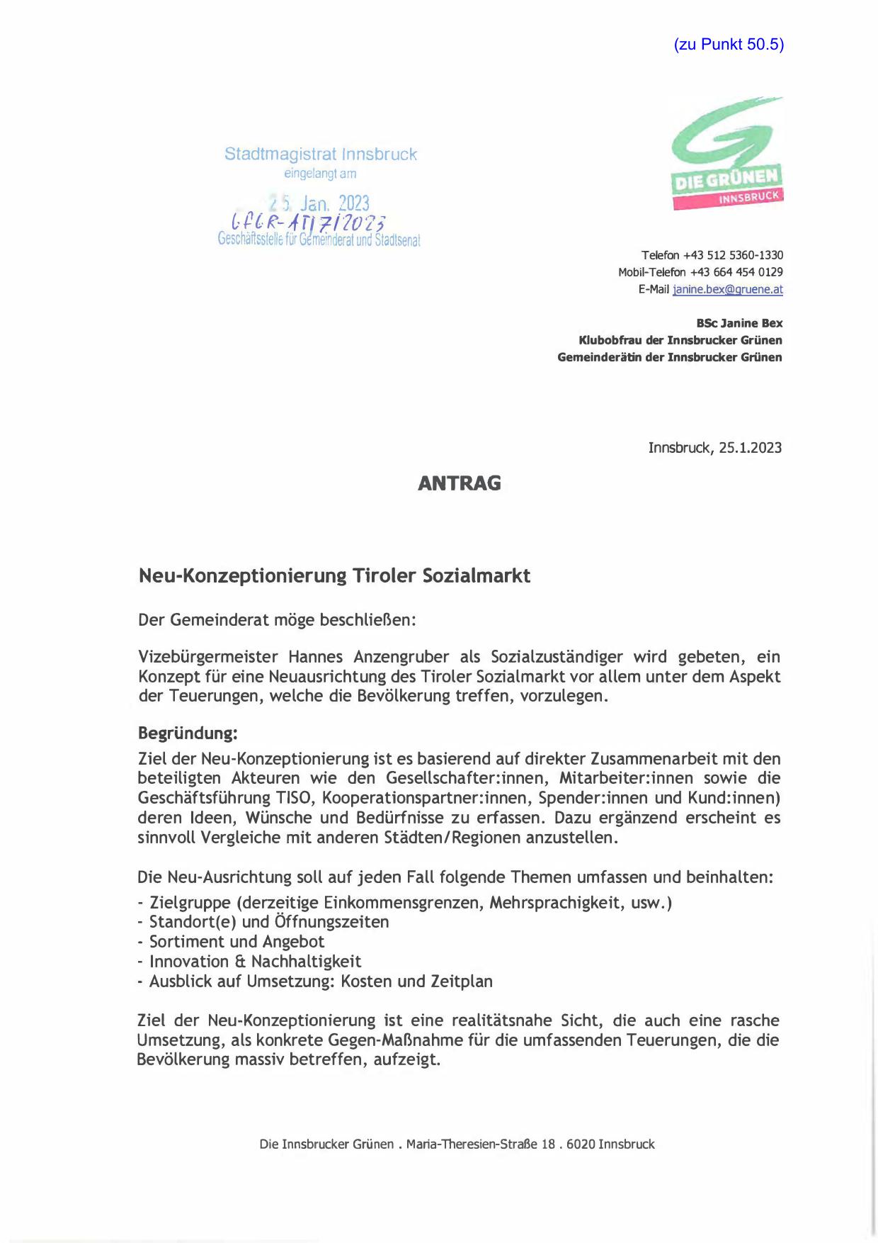 Die Innsbrucker Grü nen . Maria-Theresien-Straße 18 . 6020 Innsbruck