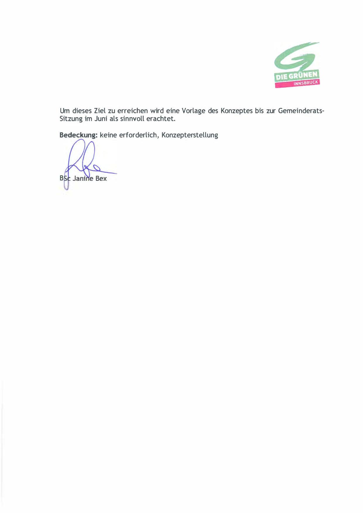 Um dieses Ziel zu erreichen wird eine Vorlage des Konzeptes bis zur Gemeinderats­
