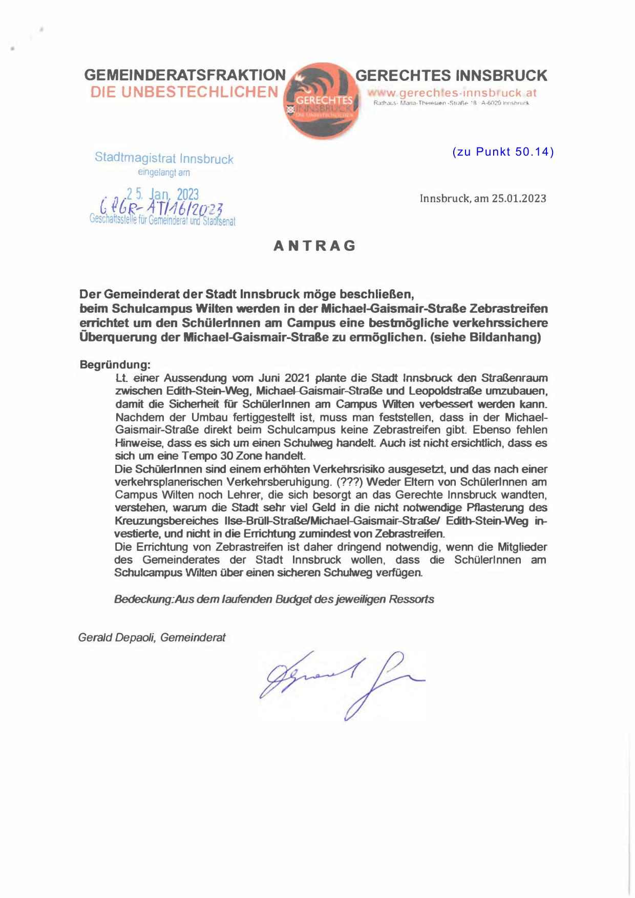 des Gemeinderates der Stadt Innsbruck wollen, dass die Schüleri nnen am