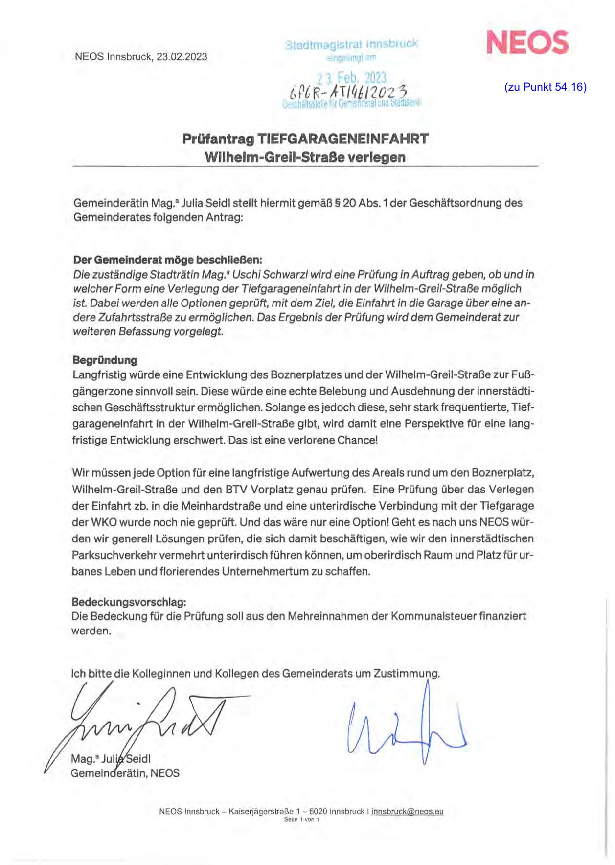 Gemeinderätin Mag.a Julia Seidl stellt hiermit gemäß§ 20 Abs. 1 der Geschäftsordnung des