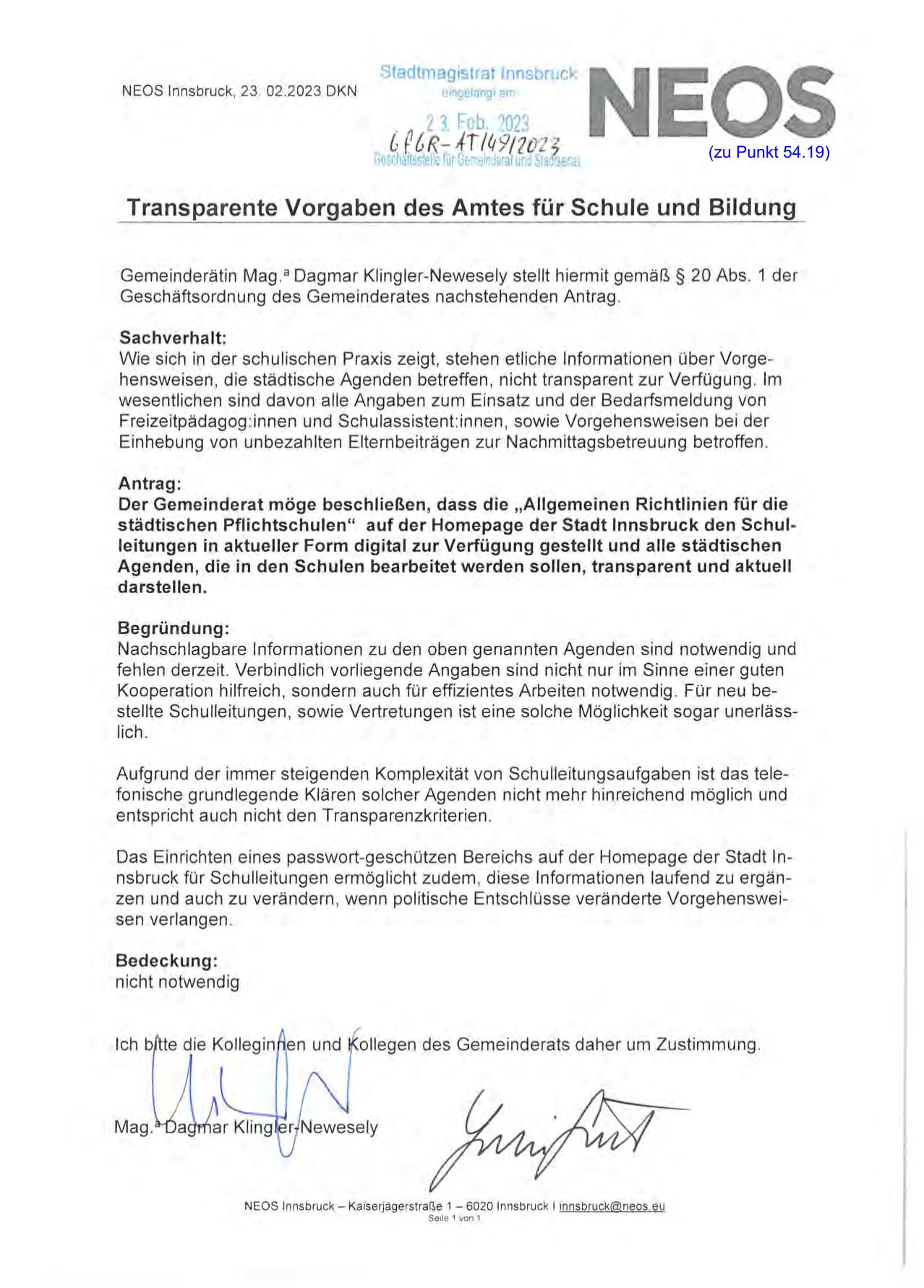 NEOS Innsbruck, 23 . 02 .2023 DKN