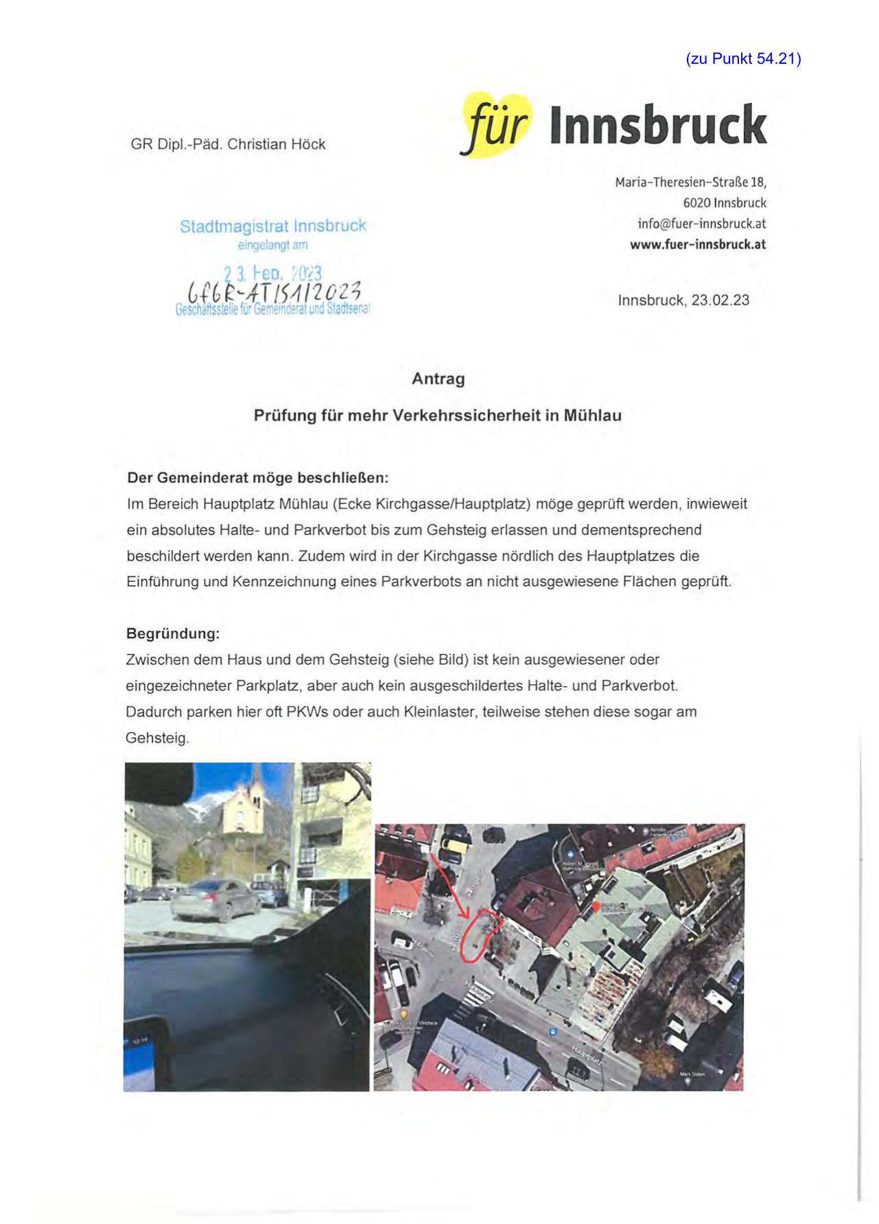 Im Bereich Hauptplatz Mühlau (Ecke Kirchgasse/Hauptplatz) möge geprüft werden , inwieweit