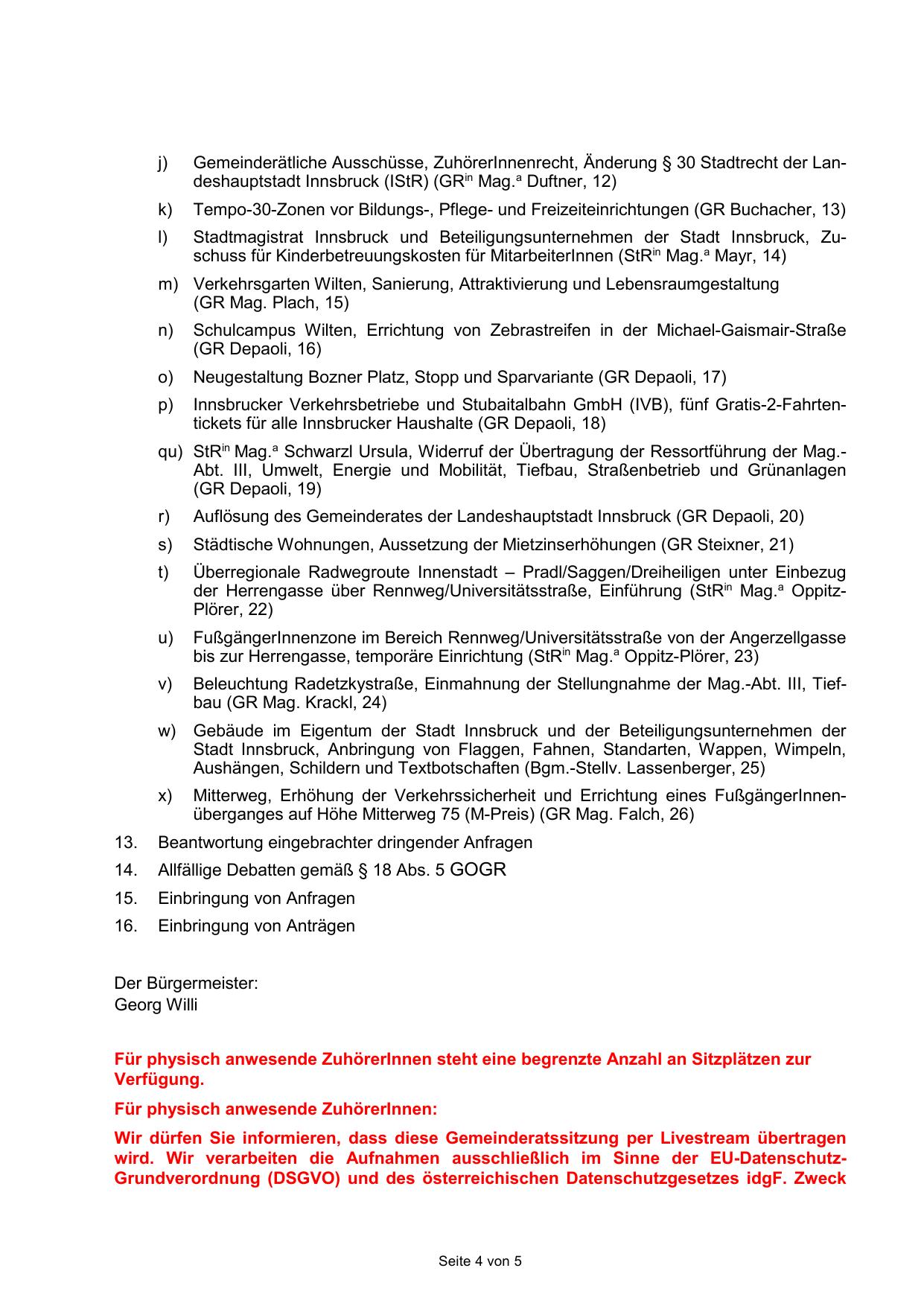 Auflösung des Gemeinderates der Landeshauptstadt Innsbruck (GR Depaoli, 20)