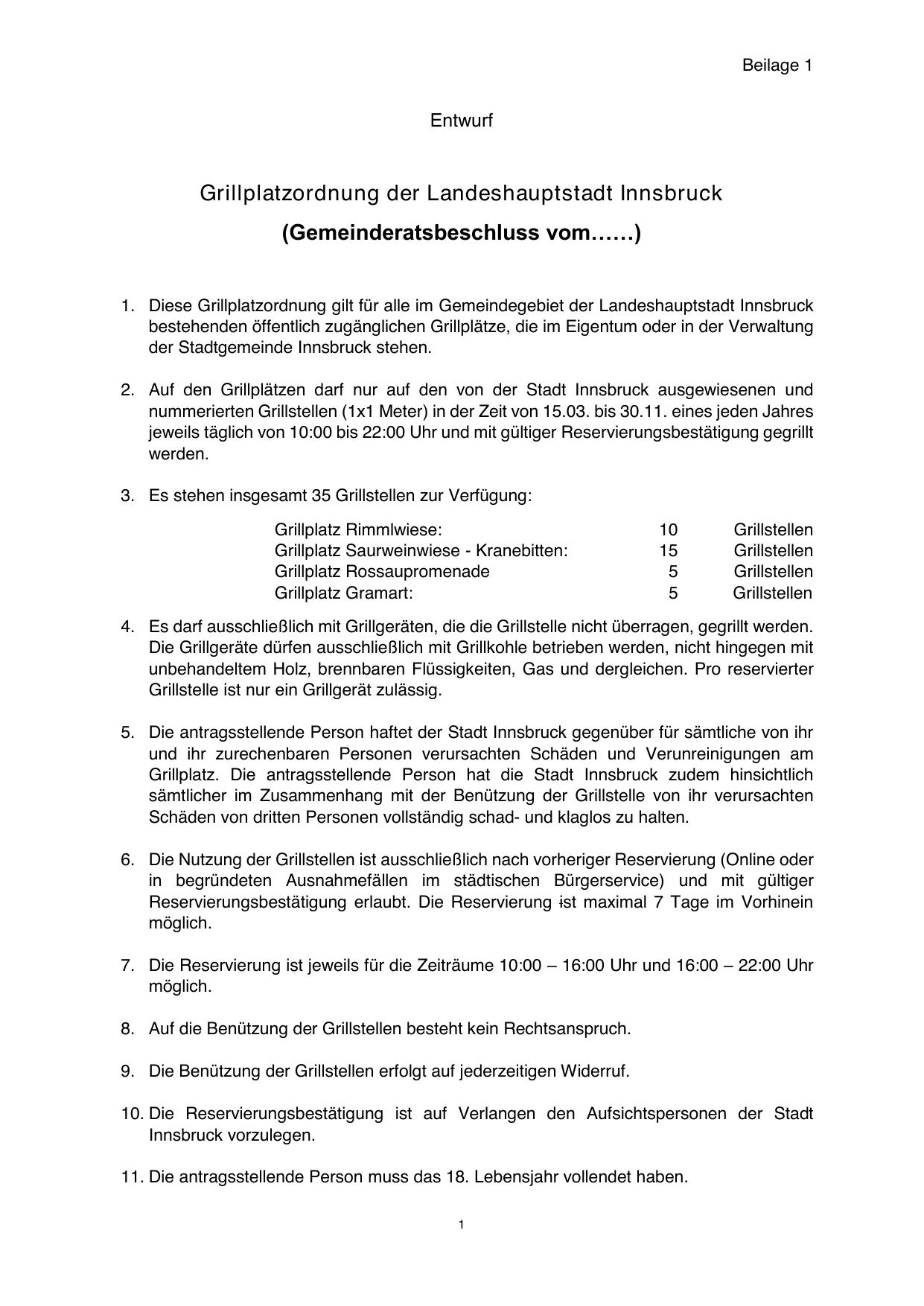 1. Diese Grillplatzordnung gilt für alle im Gemeindegebiet der Landeshauptstadt Innsbruck
