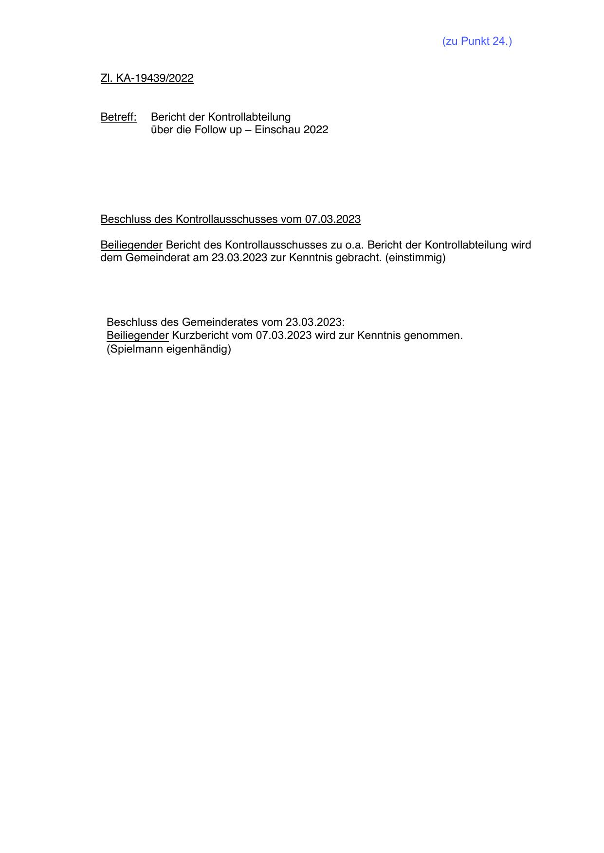 Beschluss des Kontrollausschusses vom 07.03.2023
