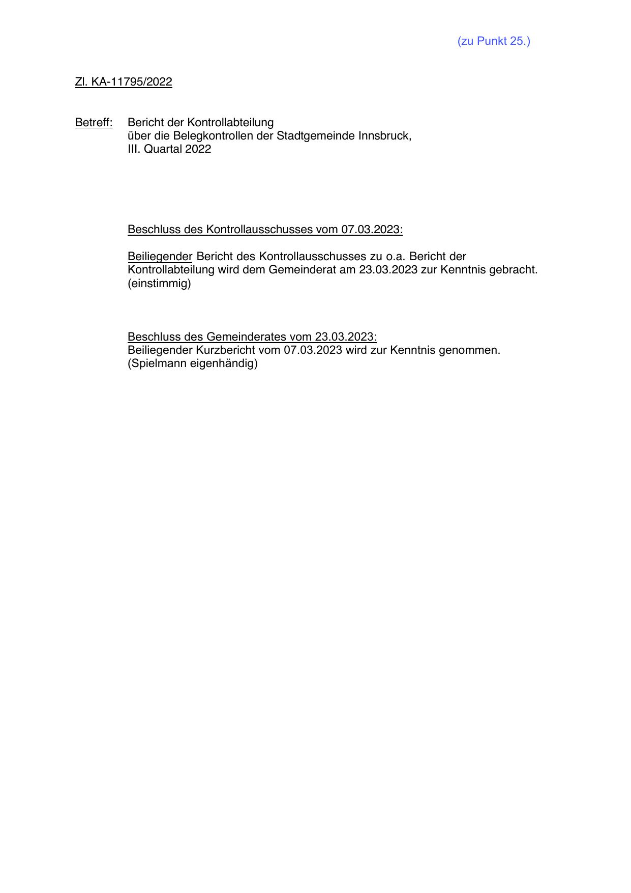 Beschluss des Kontrollausschusses vom 07.03.2023: