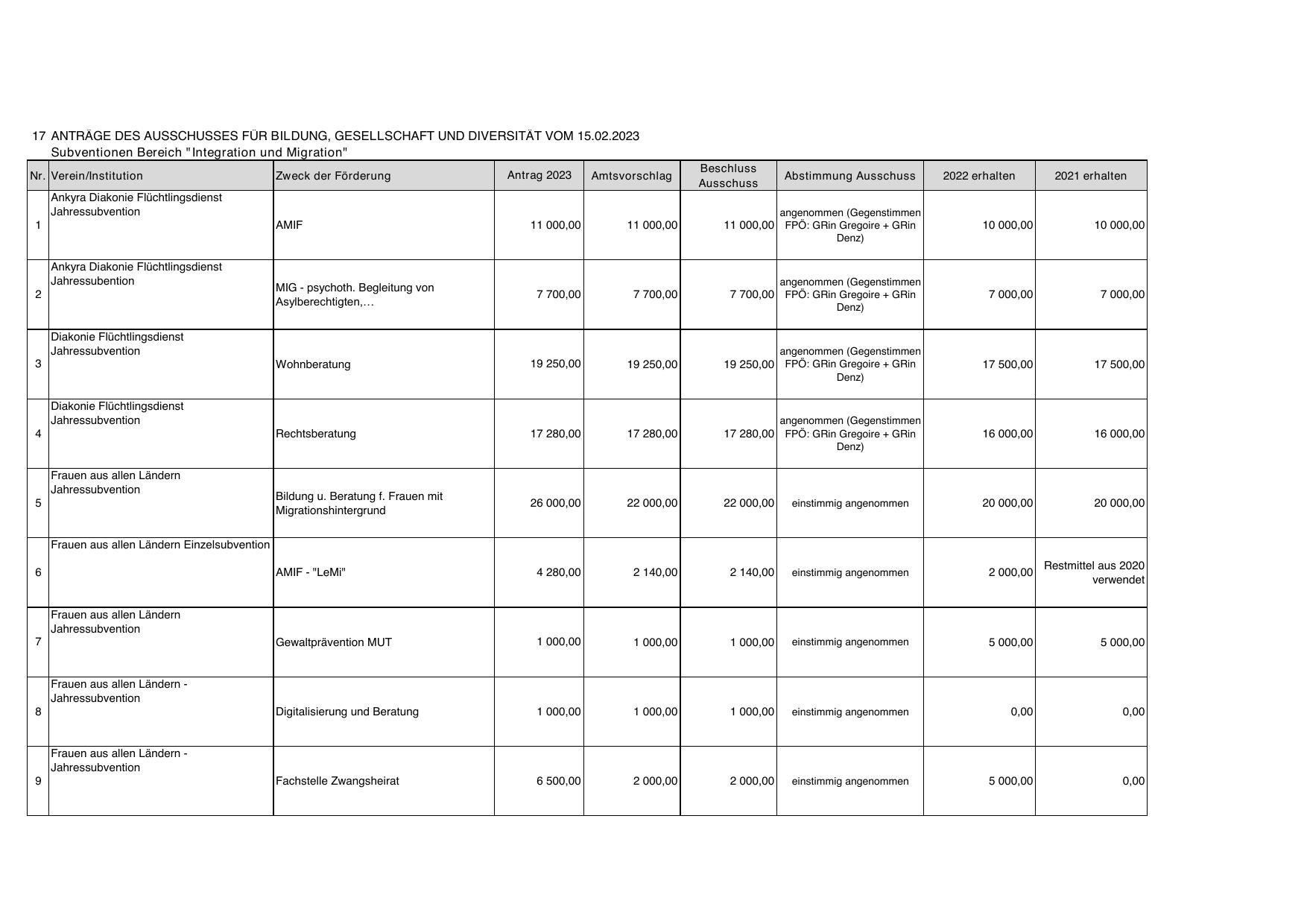 17 ANTRÄGE DES AUSSCHUSSES FÜR BILDUNG, GESELLSCHAFT UND DIVERSITÄT VOM 15.02.2023