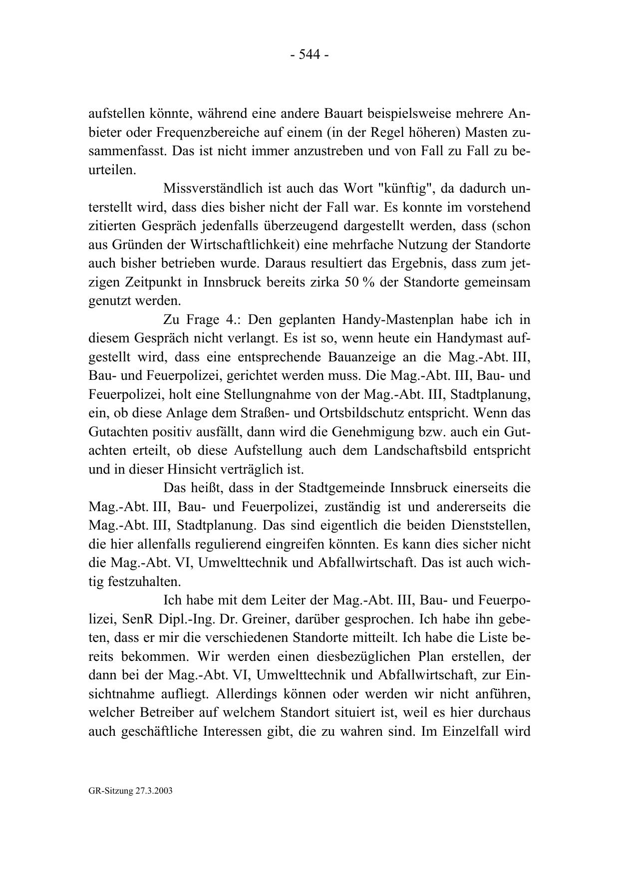 diesem Gespräch nicht verlangt. Es ist so, wenn heute ein Handymast aufgestellt wird, dass eine entsprechende Bauanzeige an die Mag.-Abt. III,