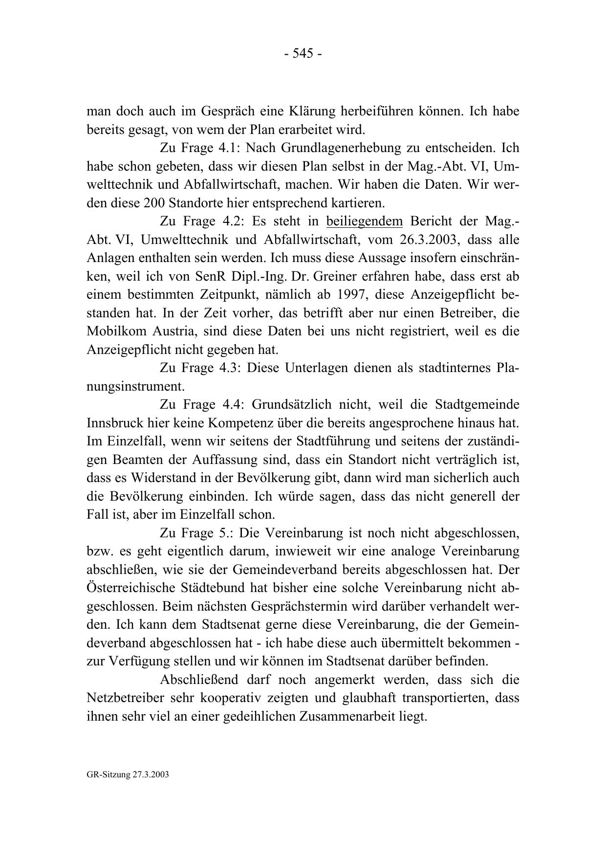 Zu Frage 4.2: Es steht in beiliegendem Bericht der Mag.Abt. VI, Umwelttechnik und Abfallwirtschaft, vom 26.3.2003, dass alle