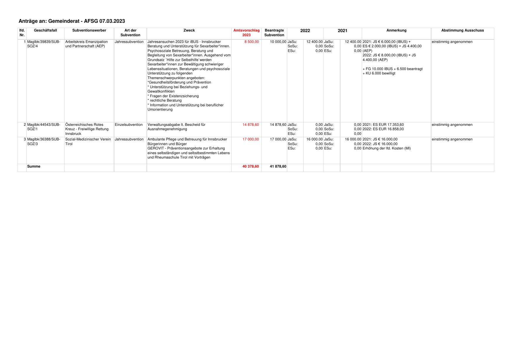Anträge an: Gemeinderat - AFSG 07.03.2023