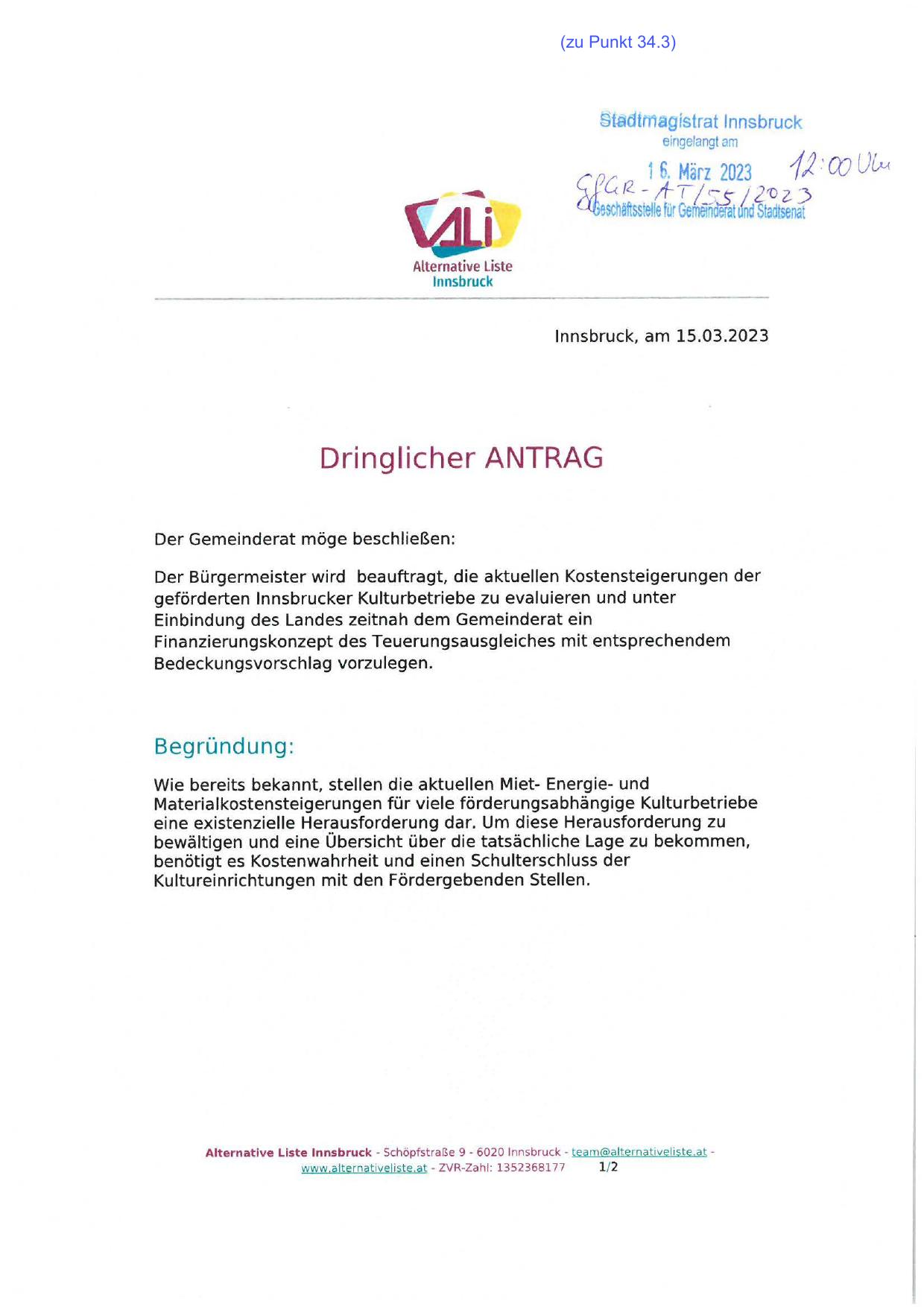 Alternative Liste Innsbruck - Schöpfstraße 9 - 6020 Innsbruck - team@alternativeliste .at www alternativeliste at - ZVR-Zahl: 1352368177
