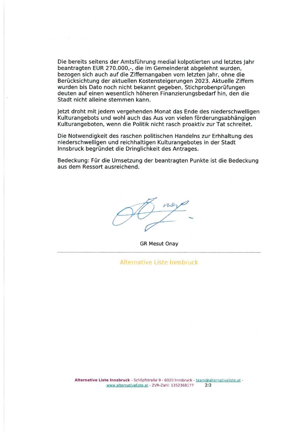 beantragten EUR 270.000,-, die im Gemeinderat abgelehnt wurden,