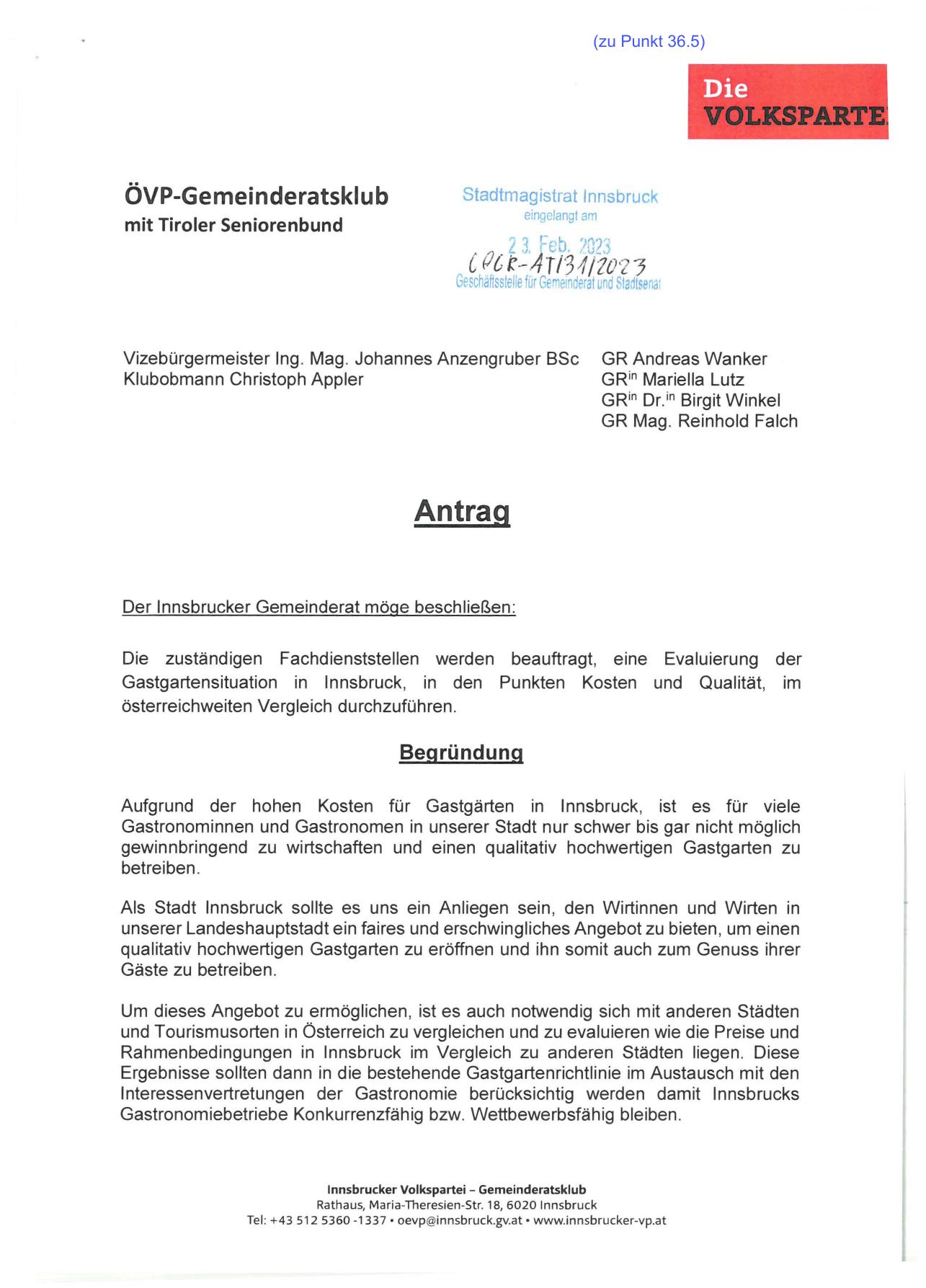 Tel: + 43 512 5360 -1337 • oevp@innsbruck.gv.at • www.innsbrucker-vp.at