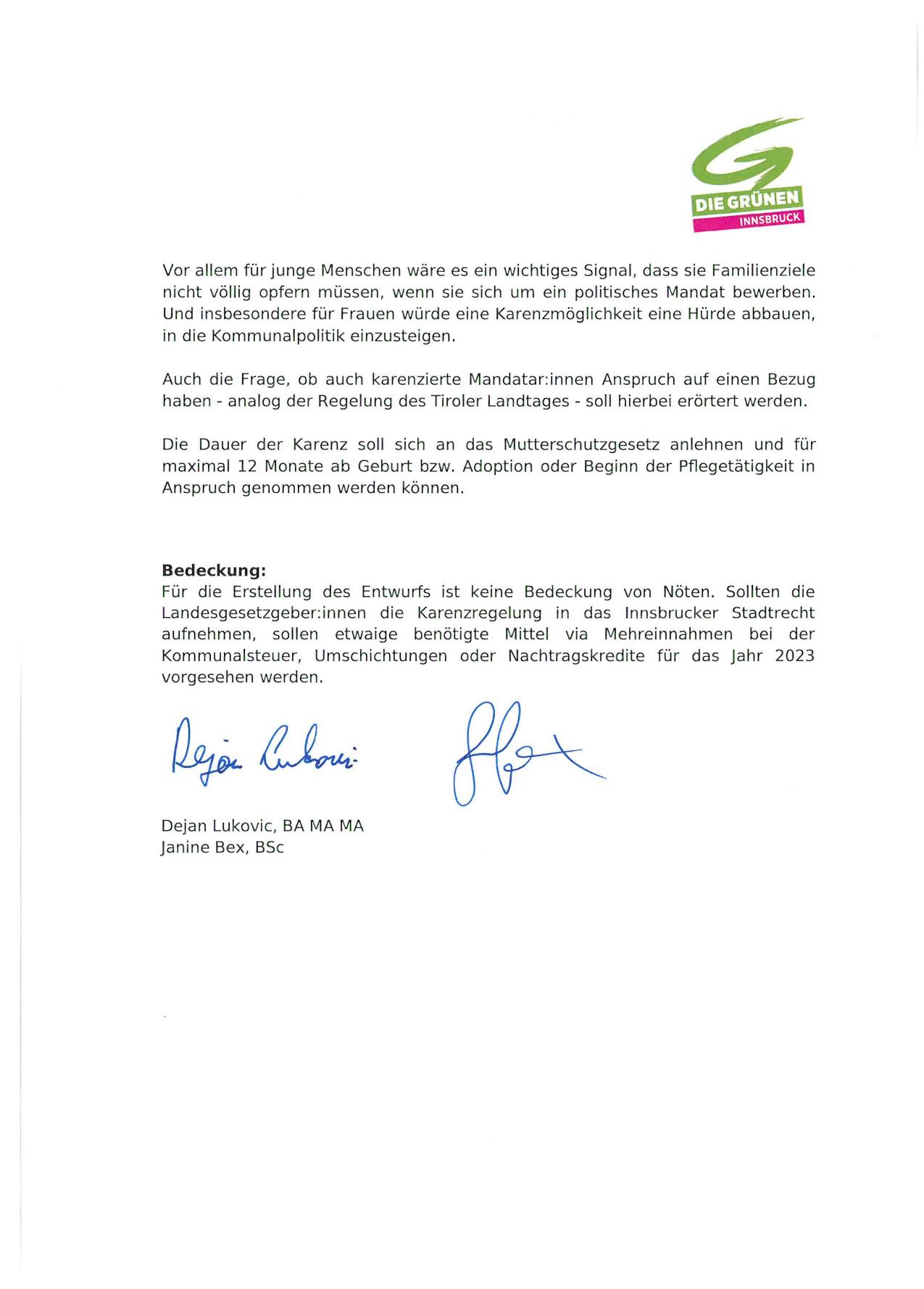 Landesgesetzgeber:innen die Karenzrege lung in das lnnsbrucker Stadtrecht