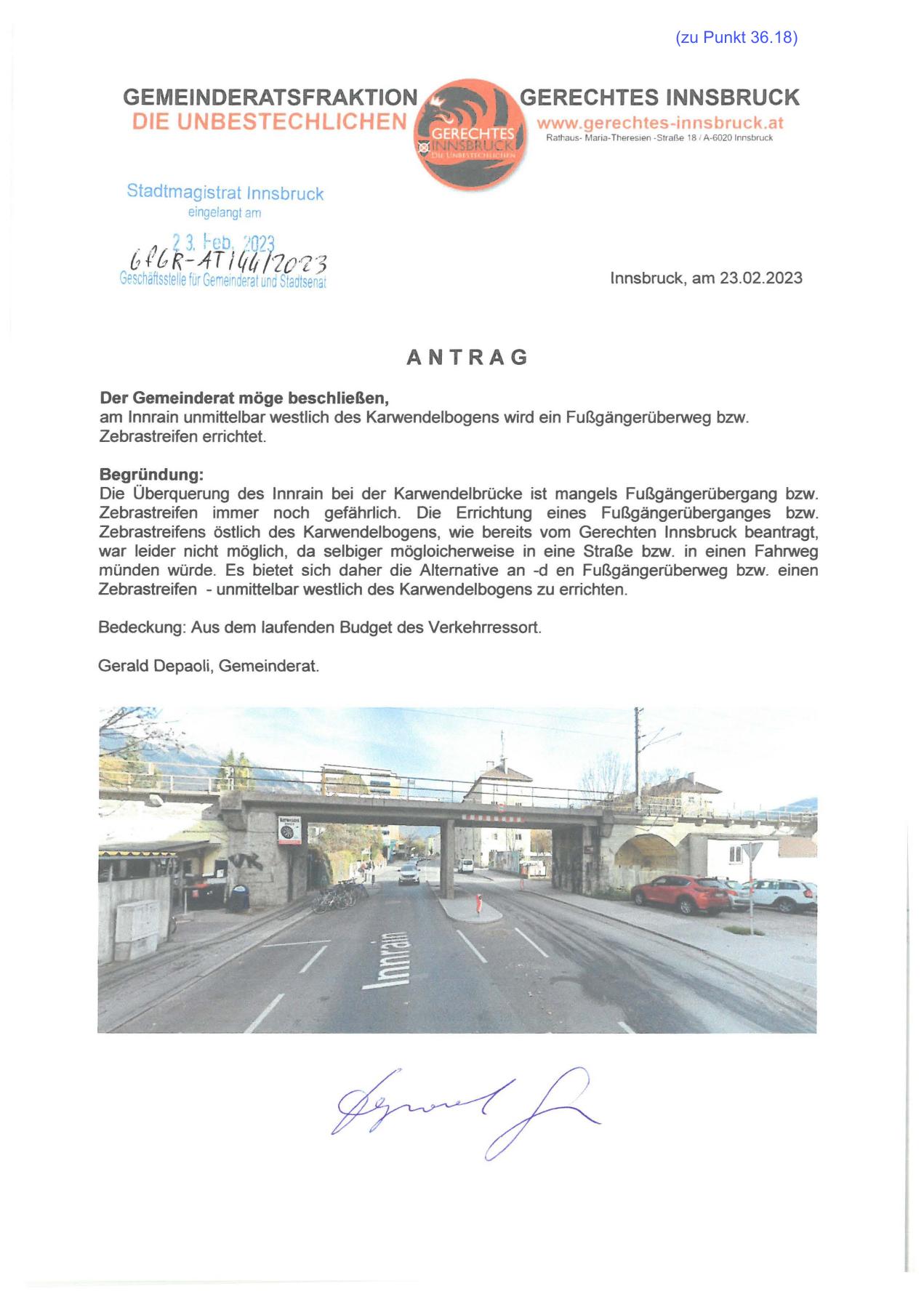 Zebrastreifens östlich des Karwendelbogens, wie bereits vom Gerechten Innsbruck beantragt,