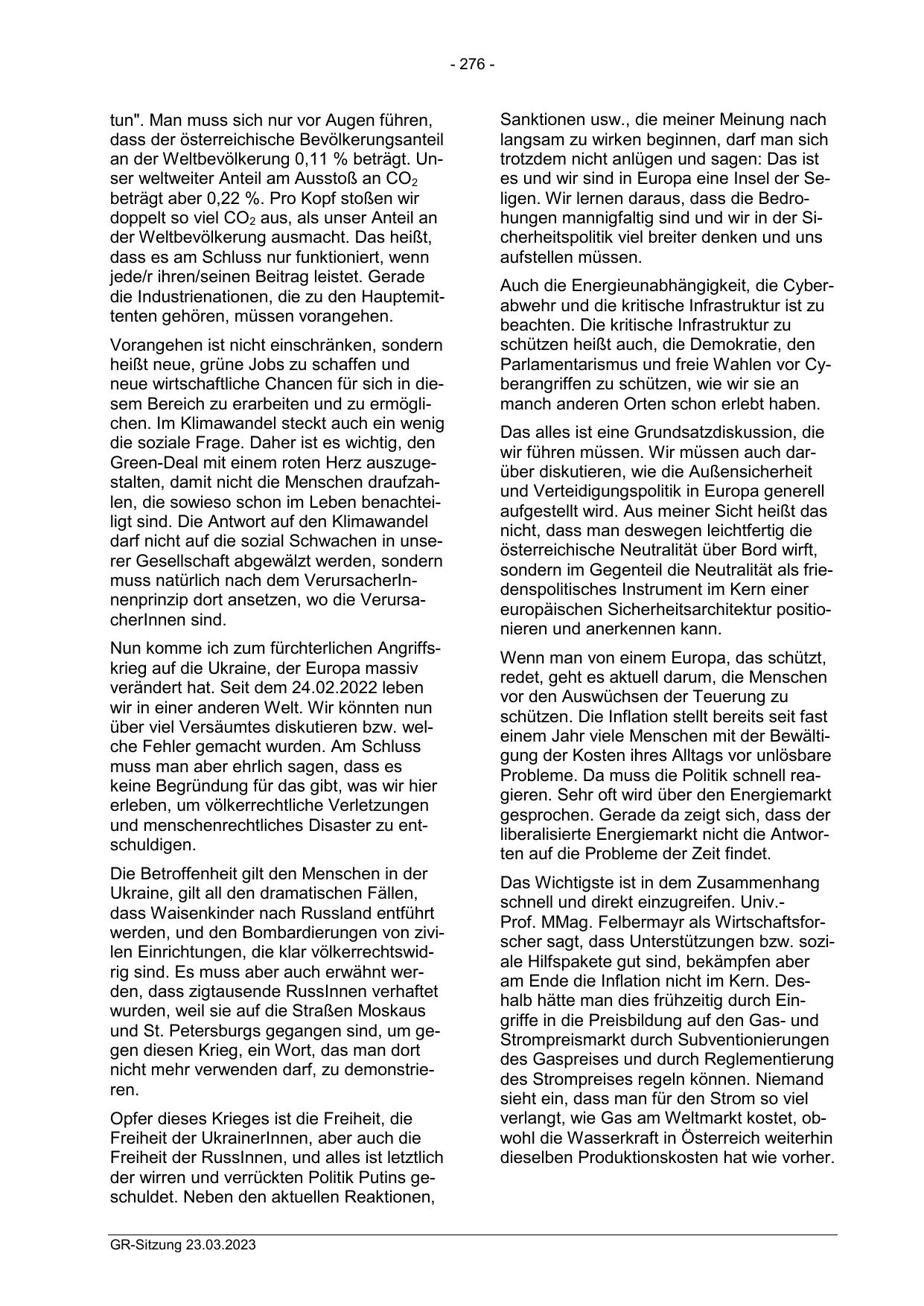 schnell und direkt einzugreifen. Univ.Prof. MMag. Felbermayr als Wirtschaftsforscher sagt, dass Unterstützungen bzw. soziale Hilfspakete gut sind, bekämpfen aber
