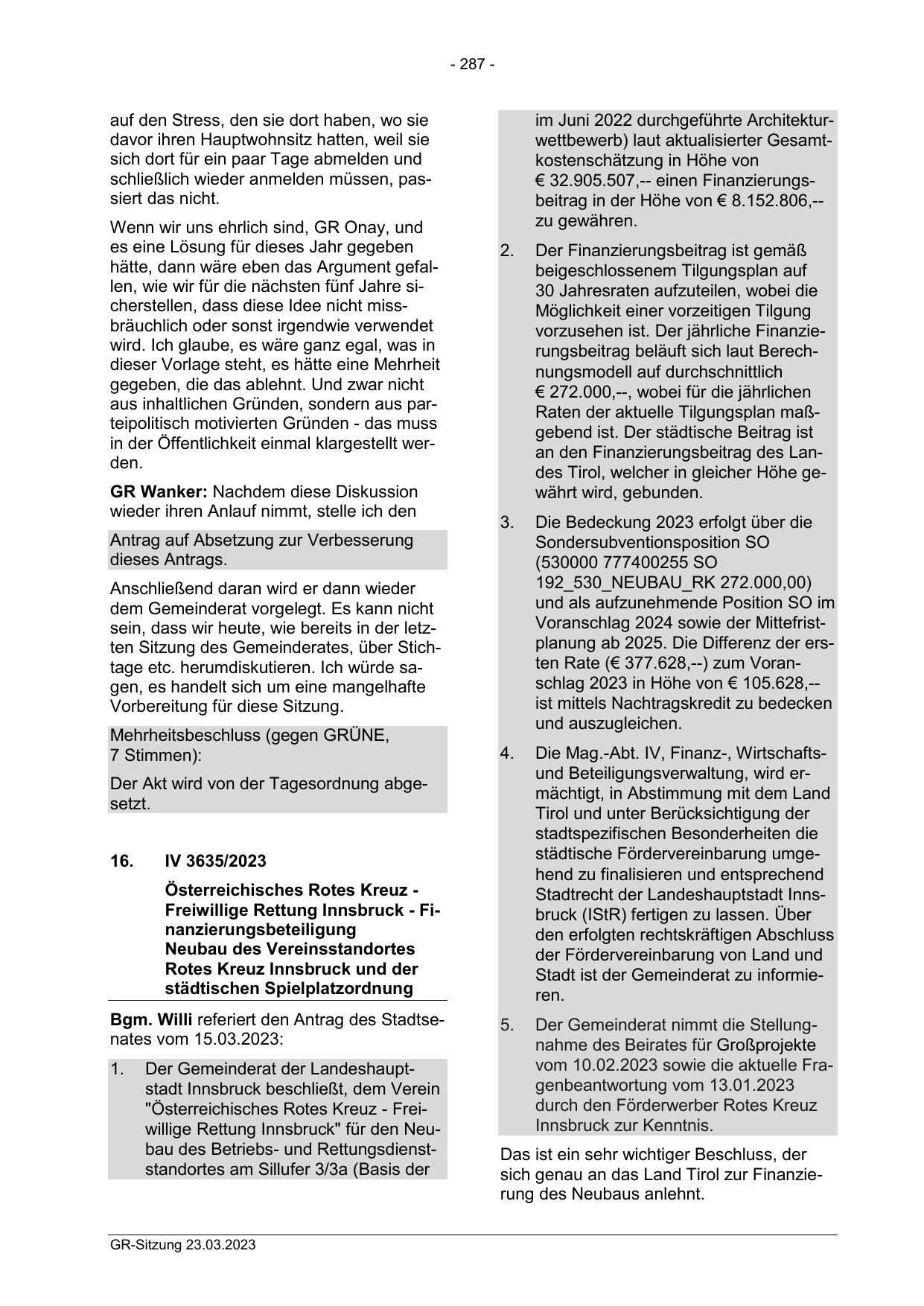 Der Gemeinderat der Landeshauptstadt Innsbruck beschließt, dem Verein