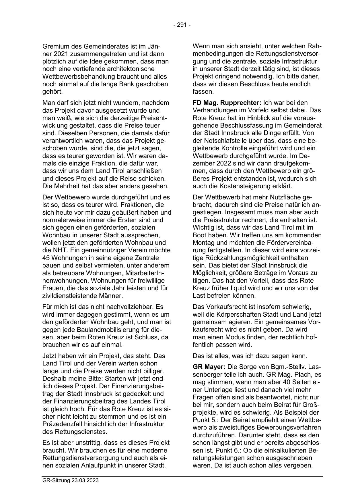 GR Mayer: Die Sorge von Bgm.-Stellv. Lassenberger teile ich auch. GR Mag. Plach, es