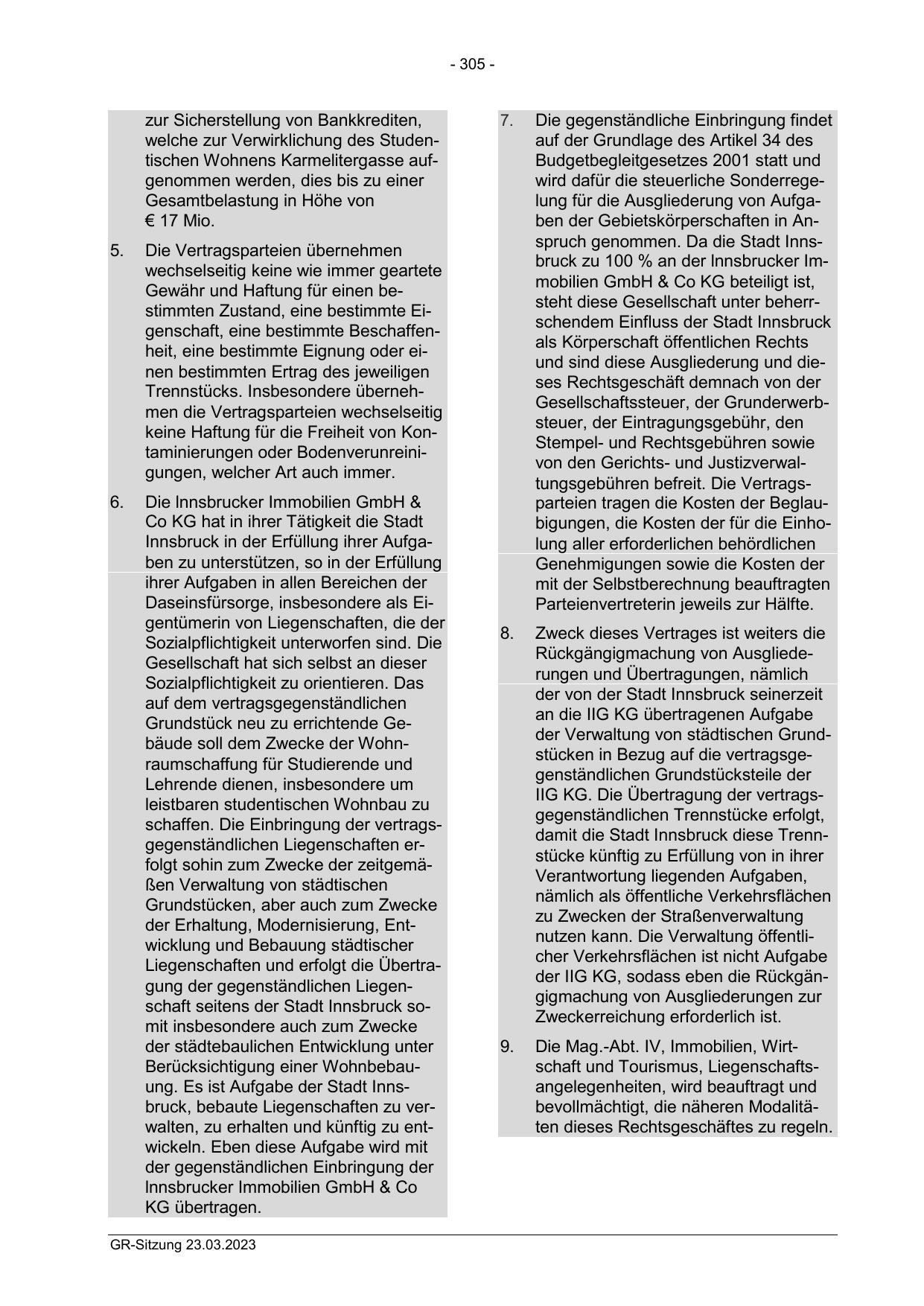 wird dafür die steuerliche Sonderregelung für die Ausgliederung von Aufgaben der Gebietskörperschaften in Anspruch genommen. Da die Stadt Innsbruck zu 100 % an der lnnsbrucker Immobilien GmbH & Co KG beteiligt ist,