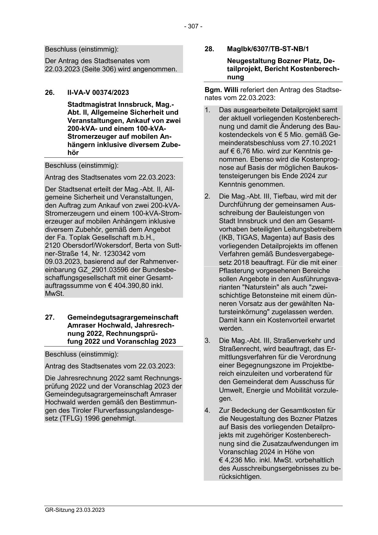 Bgm. Willi referiert den Antrag des Stadtsenates vom 22.03.2023: