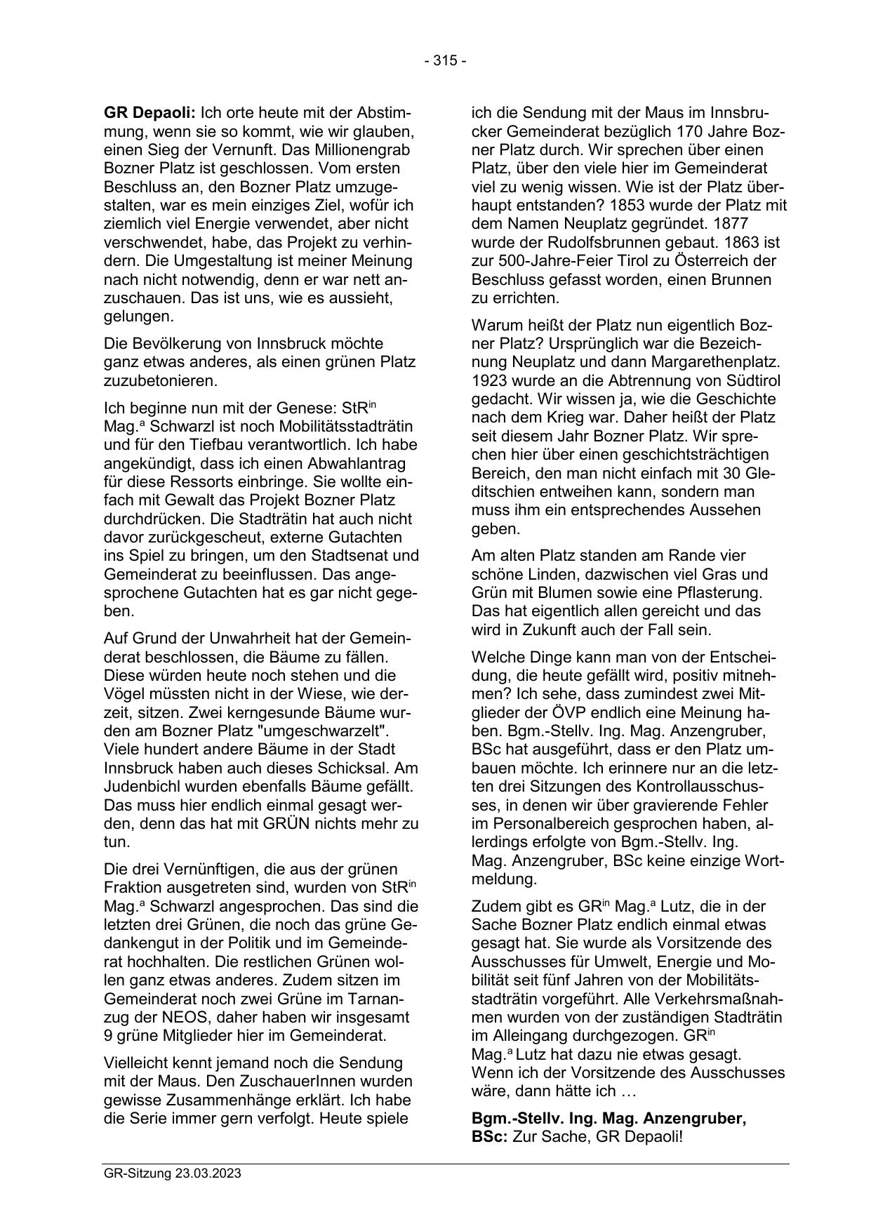 ich die Sendung mit der Maus im Innsbrucker Gemeinderat bezüglich 170 Jahre Bozner Platz durch. Wir sprechen über einen
