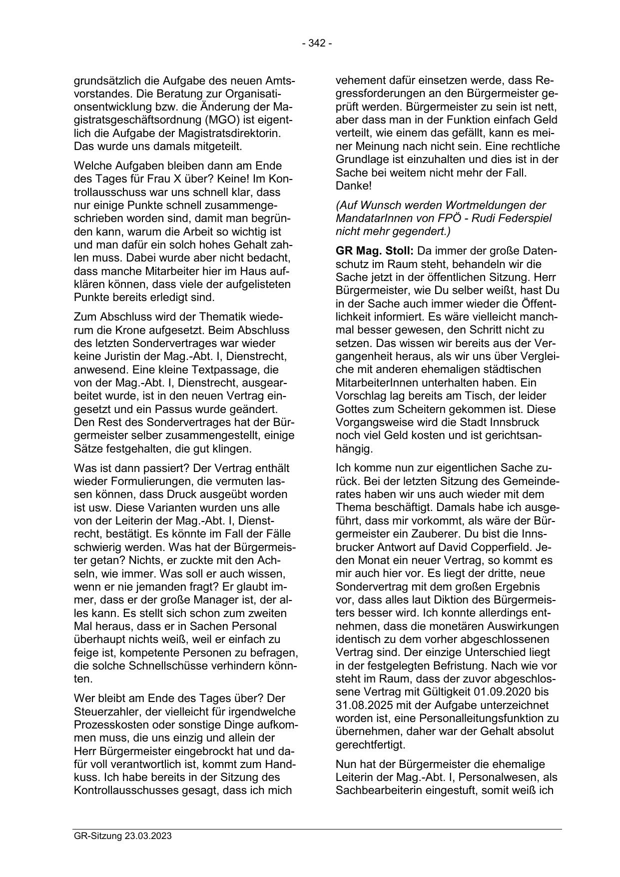 Thema beschäftigt. Damals habe ich ausgeführt, dass mir vorkommt, als wäre der Bürgermeister ein Zauberer. Du bist die Innsbrucker Antwort auf David Copperfield. Jeden Monat ein neuer Vertrag, so kommt es