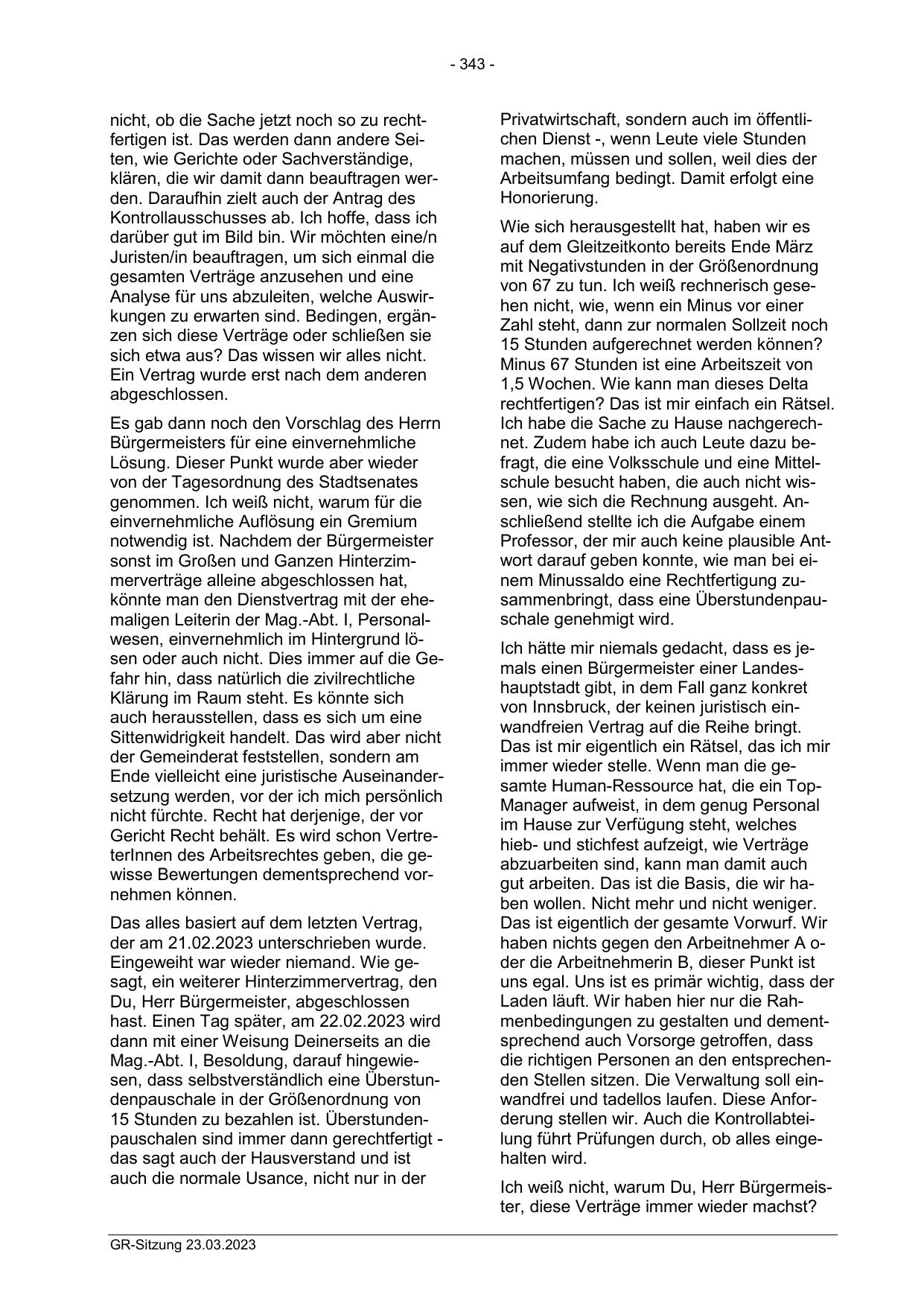 könnte man den Dienstvertrag mit der ehemaligen Leiterin der Mag.-Abt. I, Personalwesen, einvernehmlich im Hintergrund lösen oder auch nicht. Dies immer auf die Gefahr hin, dass natürlich die zivilrechtliche