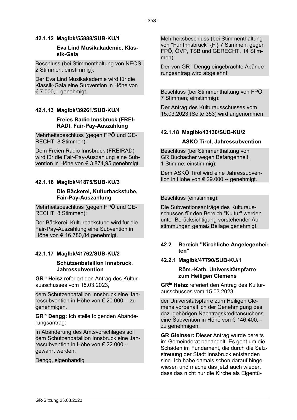 15.03.2023 (Seite 353) wird angenommen.
