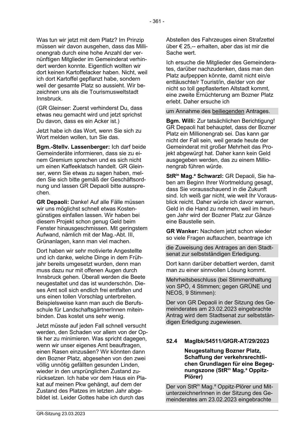 Der von GR Depaoli in der Sitzung des Gemeinderates am 23.02.2023 eingebrachte