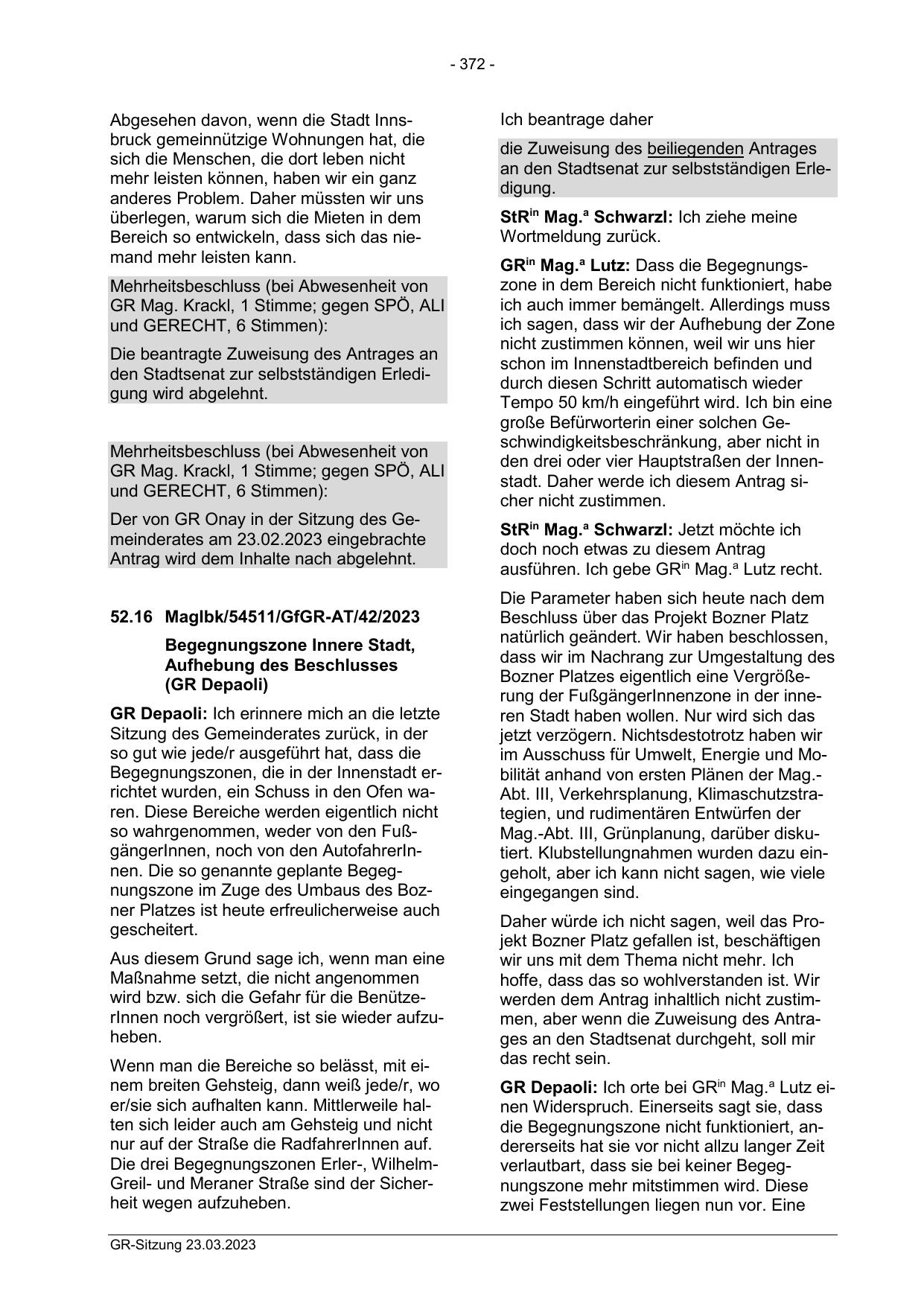 GR Depaoli: Ich orte bei GRin Mag.a Lutz einen Widerspruch. Einerseits sagt sie, dass