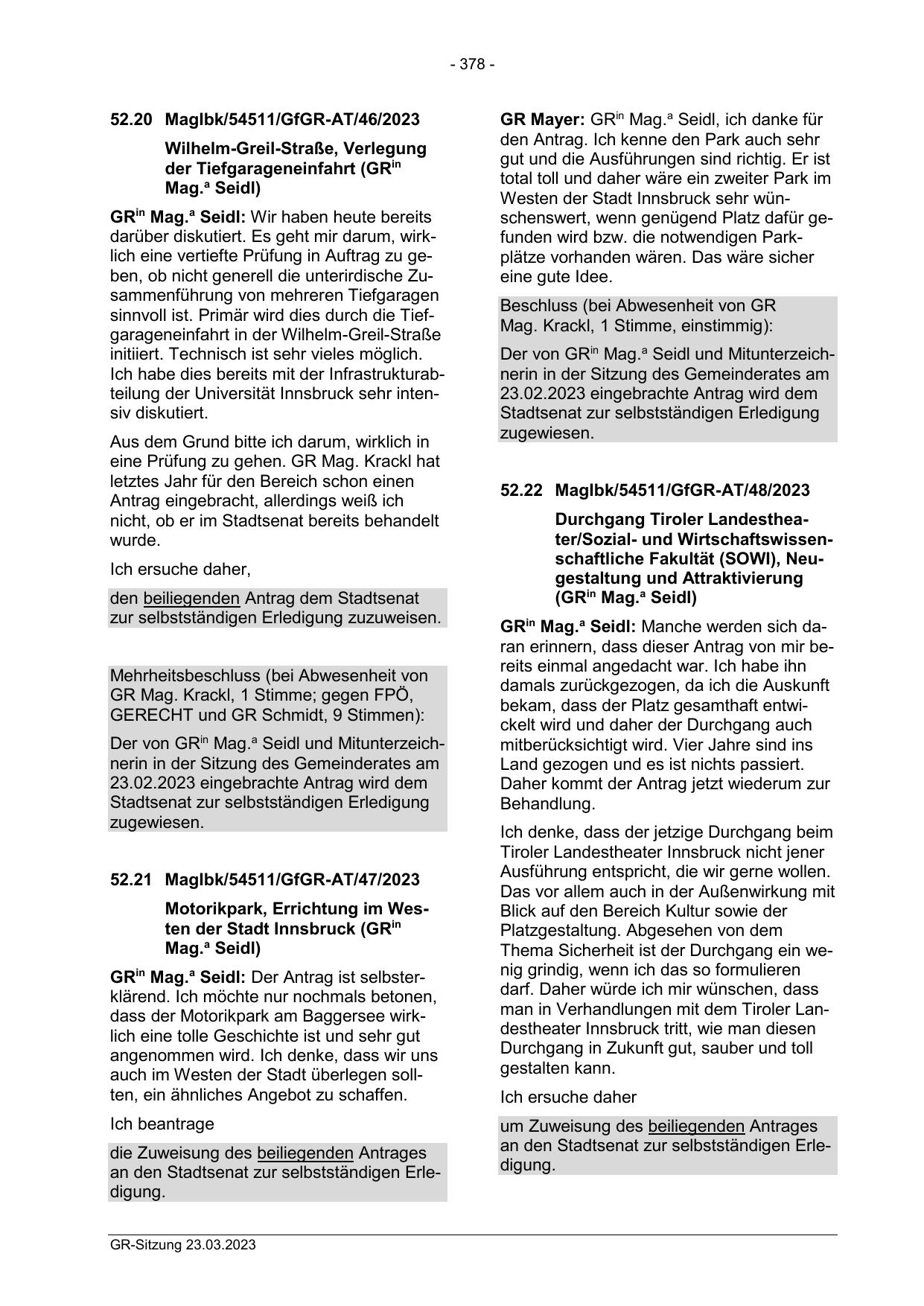 GR Mayer: GRin Mag.a Seidl, ich danke für