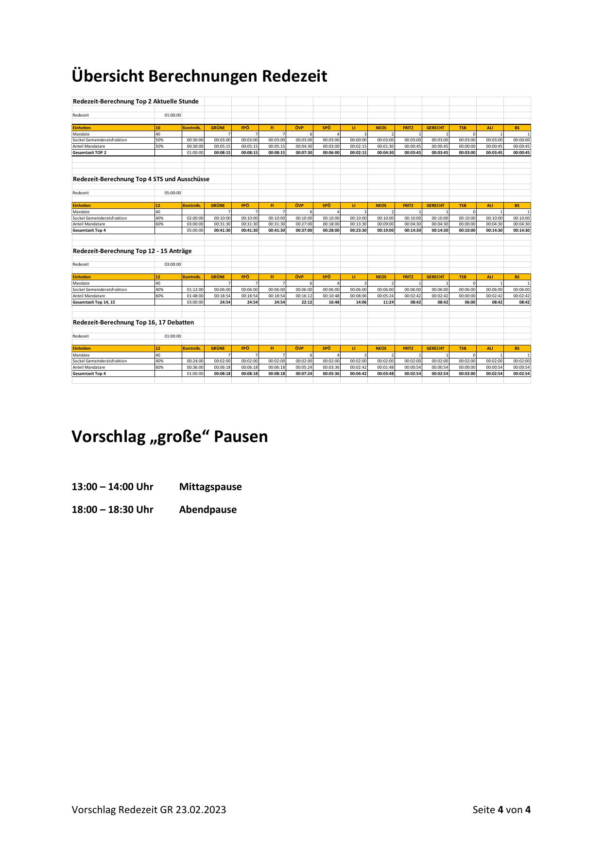 Redezeit-Berechnung Top 4 STS und Ausschüsse