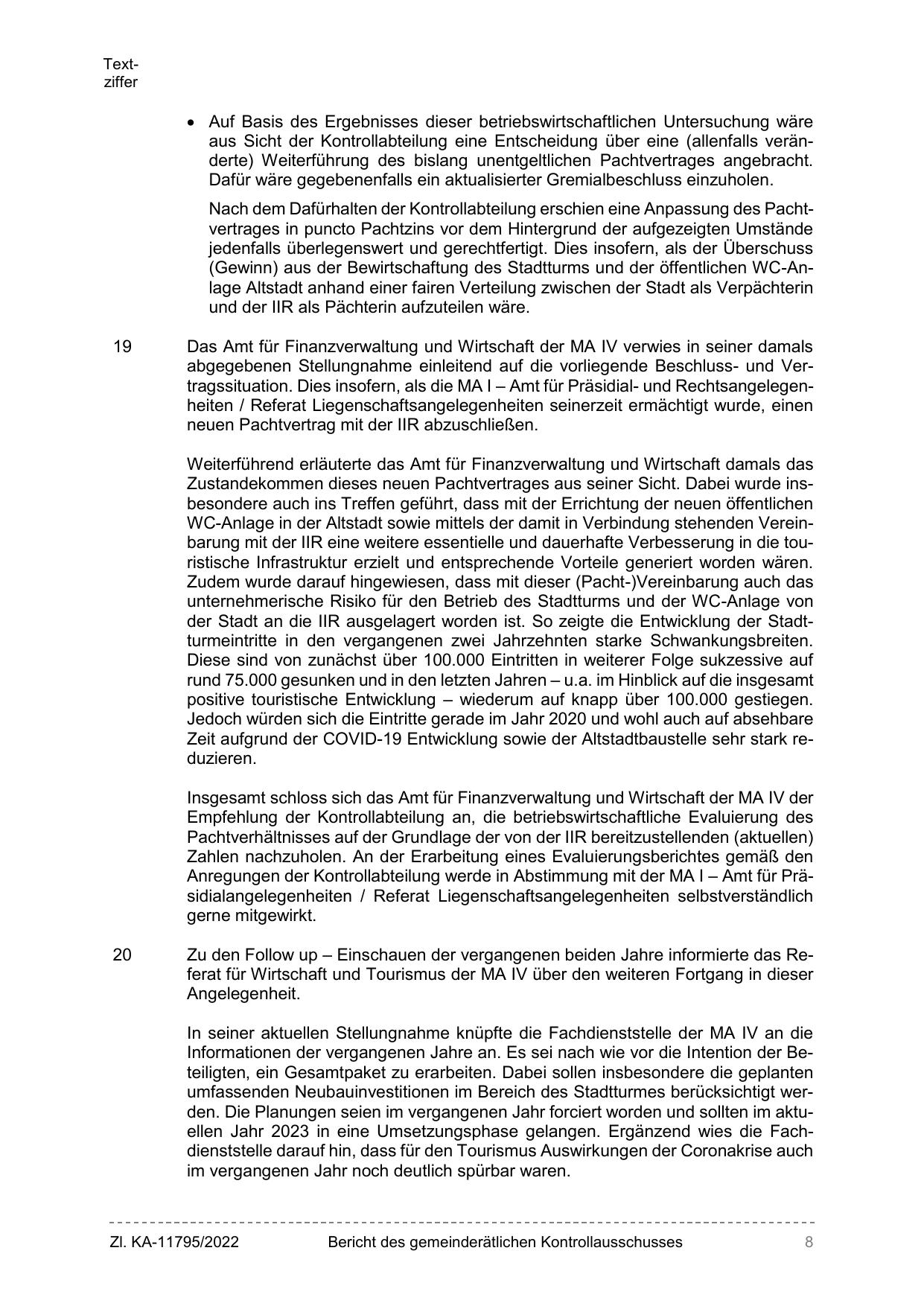 Insgesamt schloss sich das Amt für Finanzverwaltung und Wirtschaft der MA IV der