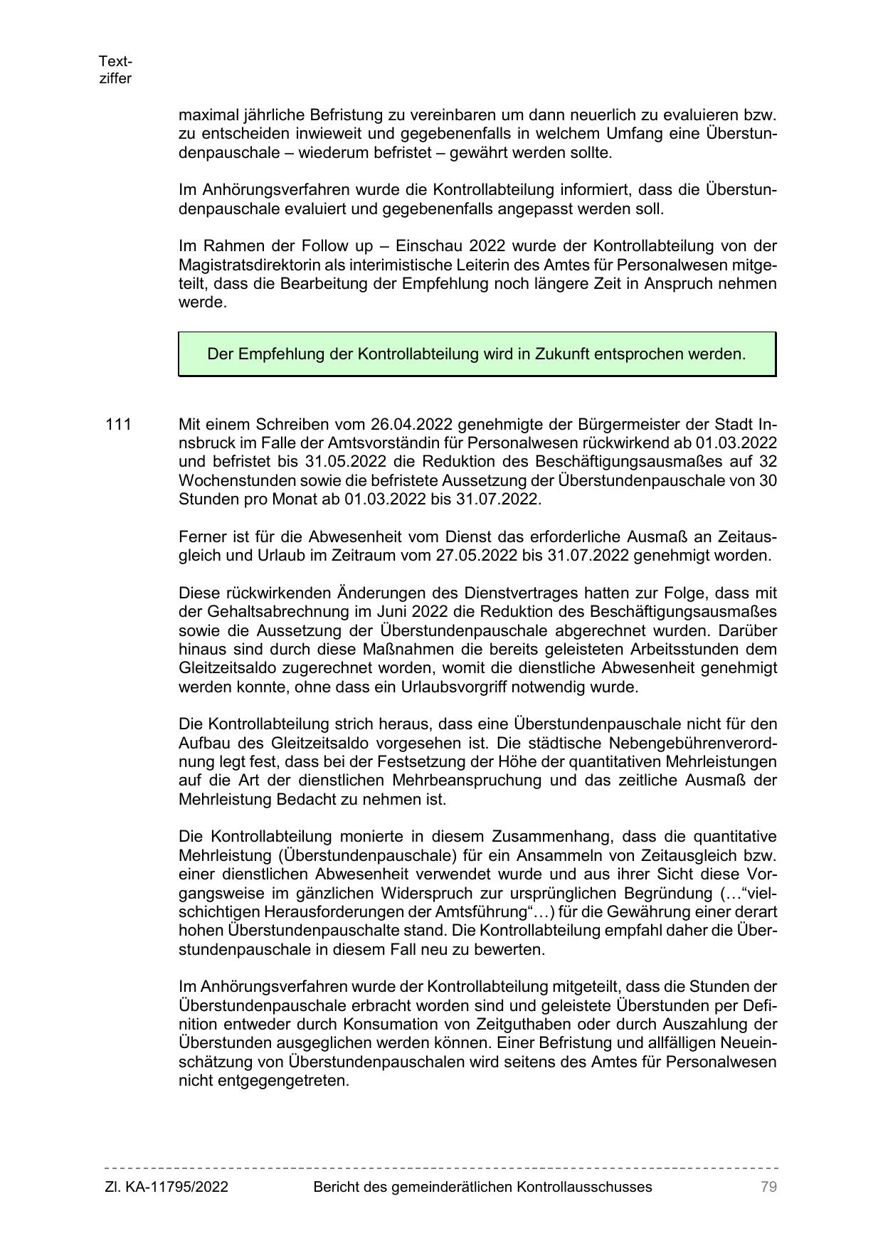 Mit einem Schreiben vom 26.04.2022 genehmigte der Bürgermeister der Stadt Innsbruck im Falle der Amtsvorständin für Personalwesen rückwirkend ab 01.03.2022