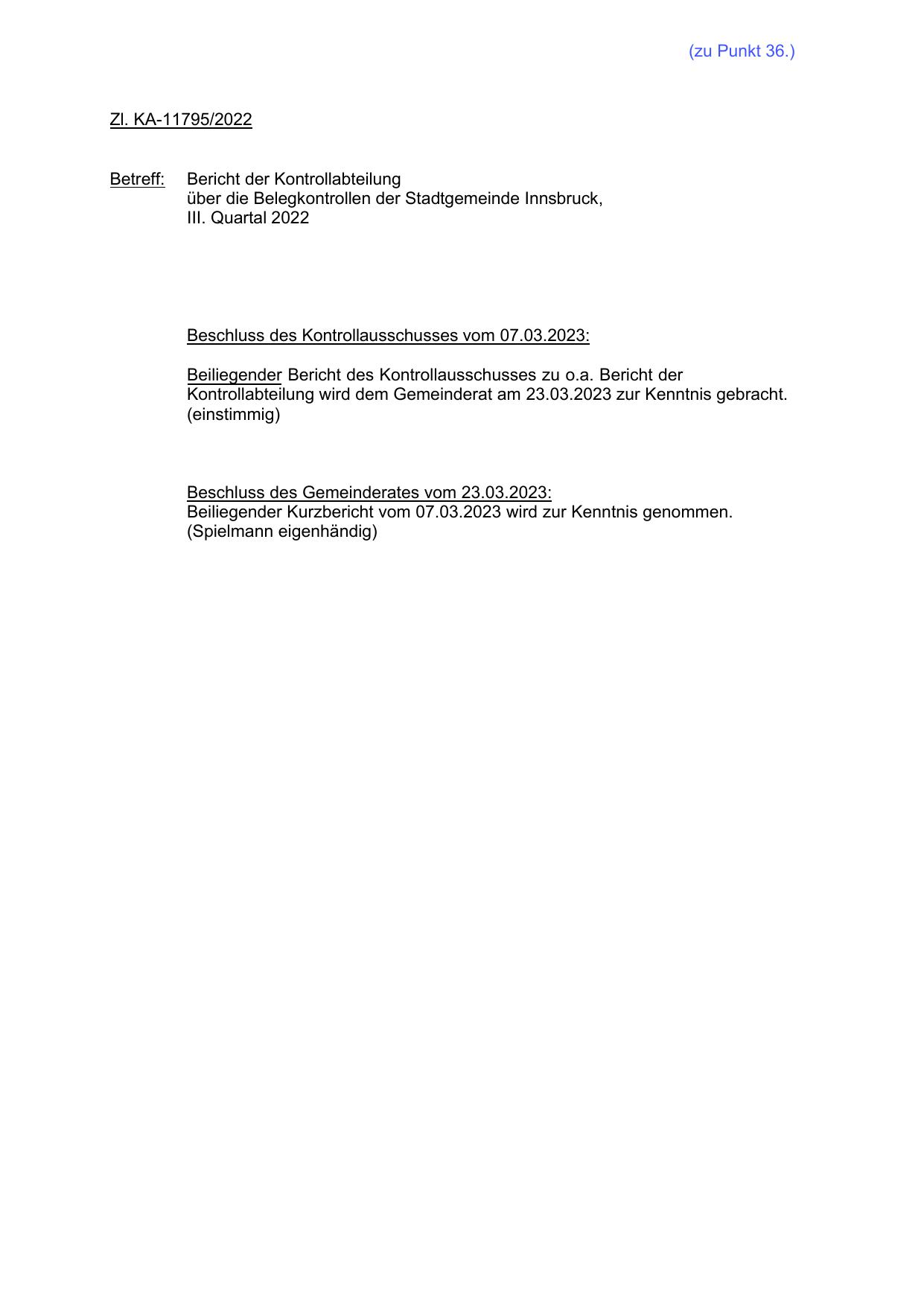 Beschluss des Kontrollausschusses vom 07.03.2023: