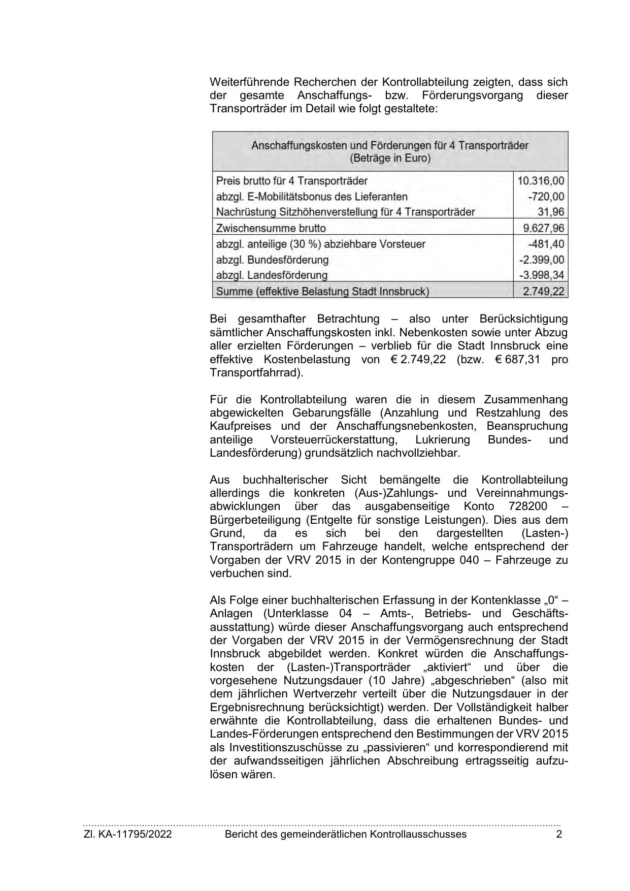 Innsbruck abgebildet werden. Konkret würden die Anschaffungskosten der (Lasten-)Transporträder „aktiviert“ und über die