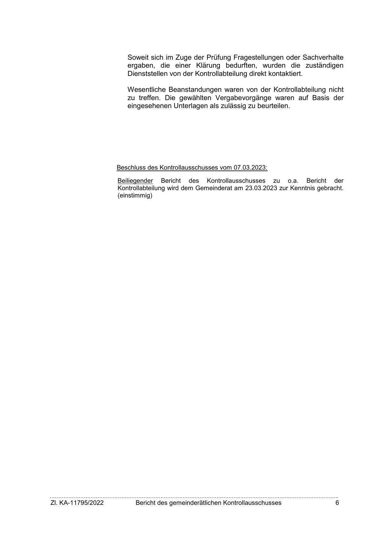 Kontrollabteilung wird dem Gemeinderat am 23.03.2023 zur Kenntnis gebracht.