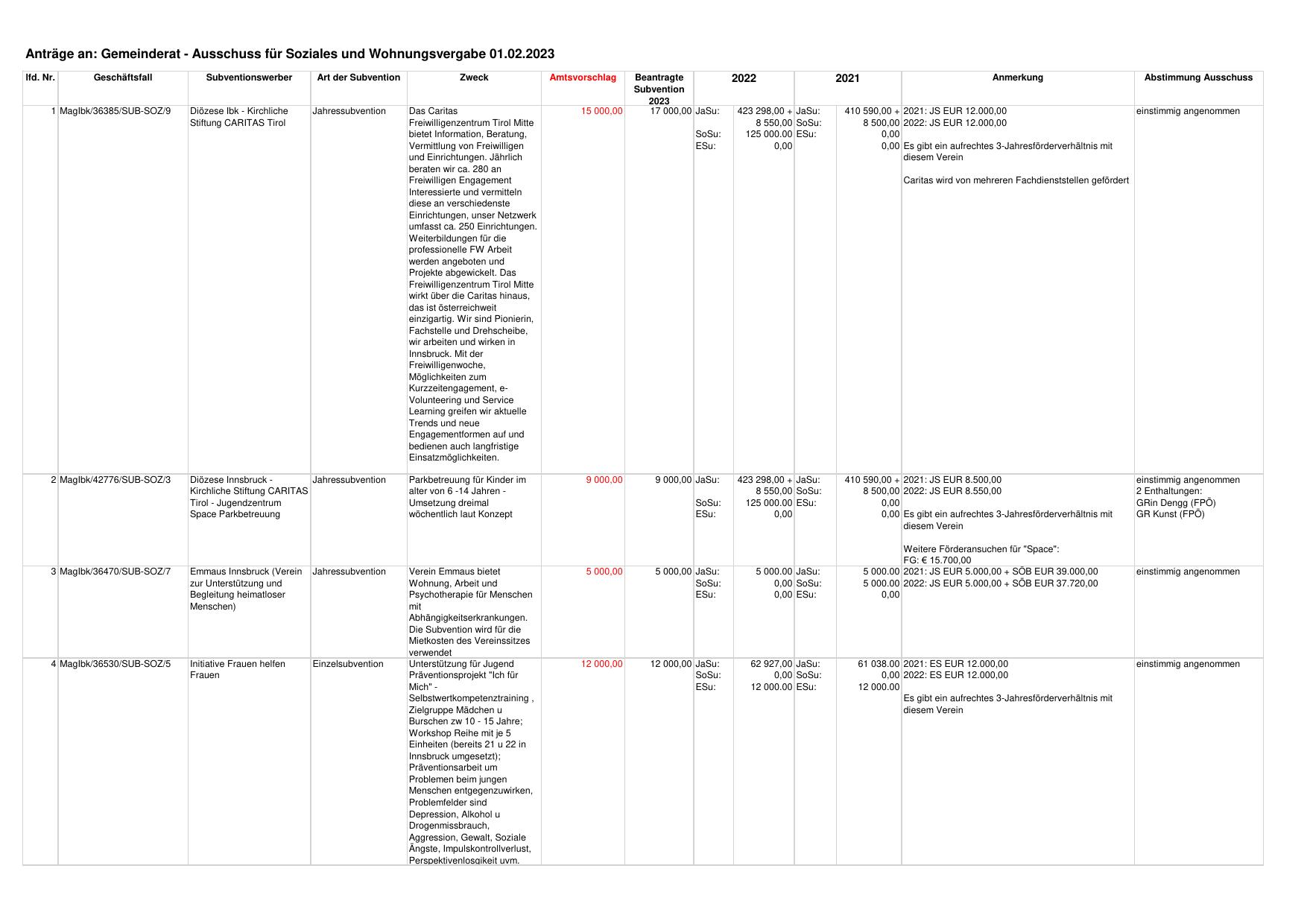Anträge an: Gemeinderat - Ausschuss für Soziales und Wohnungsvergabe 01.02.2023