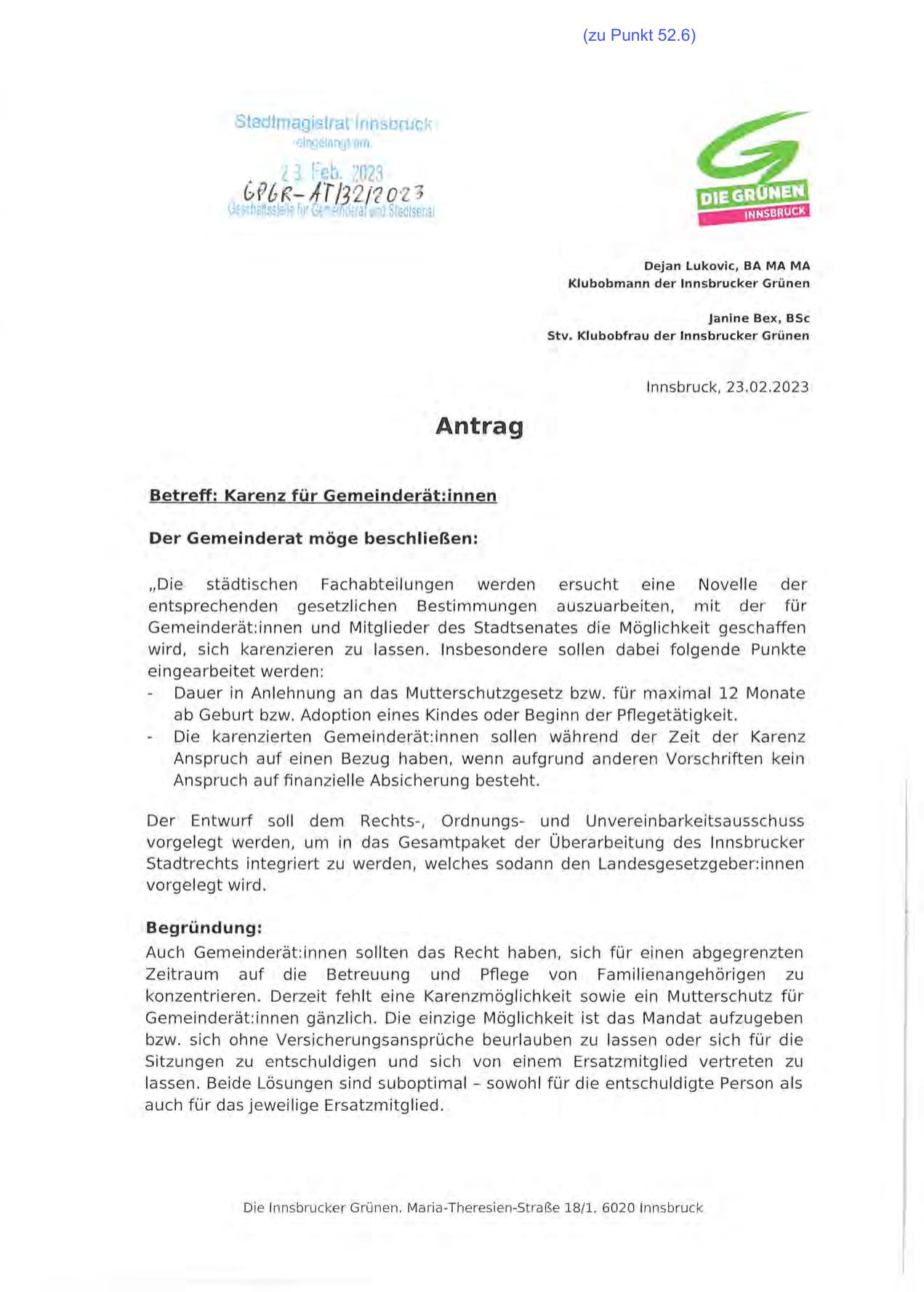 Die lnnsbrucker Grünen . Maria -Theresien -Straße 18/1. 602 0 Innsbruck